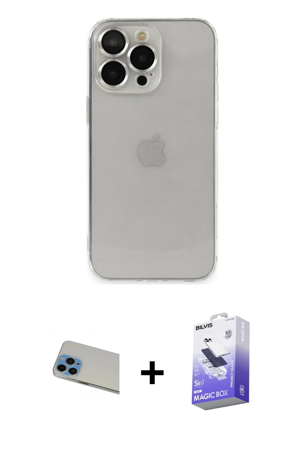 iPhone 13 Pro Max Ufuk Minimal Özel Seri - Siyah Bilvis 5in1 5D Magic Hayalet Cam Ekran Koruyucu + Mavi Rainbow Kamera Lens Koruma Cam, iPhone 13 Pro Max modeli için kılıf, ekran koruyucu ve kamera lens koruyucuyu bir araya getiren premium bir settir. Görünümde kılıfta Siyah tonu, lens koruyucuda Mavi detay ile bütünlüklü ve dikkat çekici bir stil sunar. Set; kamera bölümünü ekstra güvenceye alan koruma, ekranı çizilme ve darbelere karşı destekleyen koruma ve ekranı çizilme ve darbelere karşı destekleyen koruma sağlayarak cihazınızı günlük kullanıma karşı destekler. Tek paketle hem estetik hem de kapsamlı korumayı pratik şekilde tamamlayabilirsiniz.