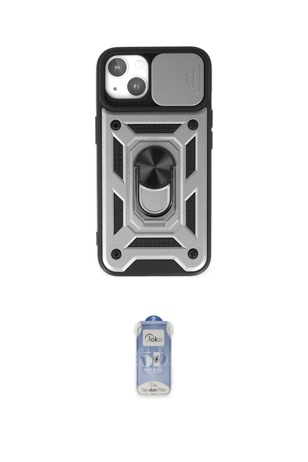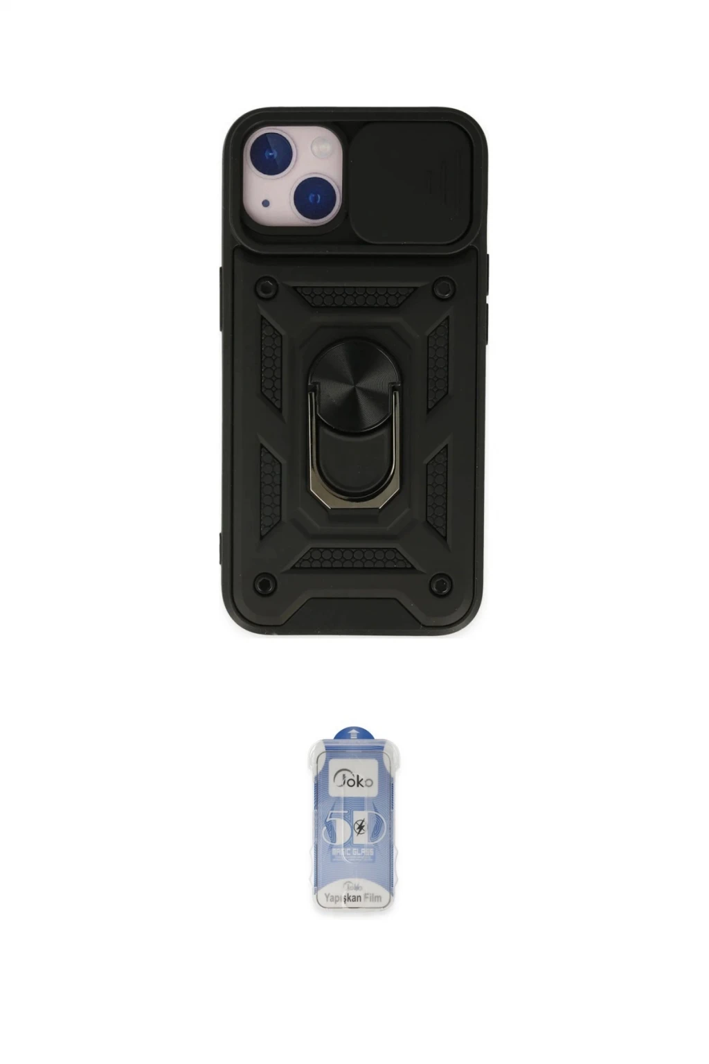 iPhone 14 Kılıf Ahenk Klasik - Siyah Joko Magic 5D Cam, iPhone 14 modeli için kılıf ve ekran koruyucuyu bir araya getiren uyumlu bir settir. Kılıfta Siyah tonu ile görünümü tamamlar, ekran koruyucu ile günlük kullanımda dengeli koruma sunar. Newface iPhone 14 Kılıf Pars Lens Yüzüklü Silikon - Siyah cihazın gövdesini desteklerken, Joko iPhone 14 Joko Magic 5D Cam ekranı çizilme ve darbelere karşı tamamlayıcı koruma sağlar. Tek paketle hem görünümü hem de temel korumayı hızlıca tamamlayabilirsiniz.