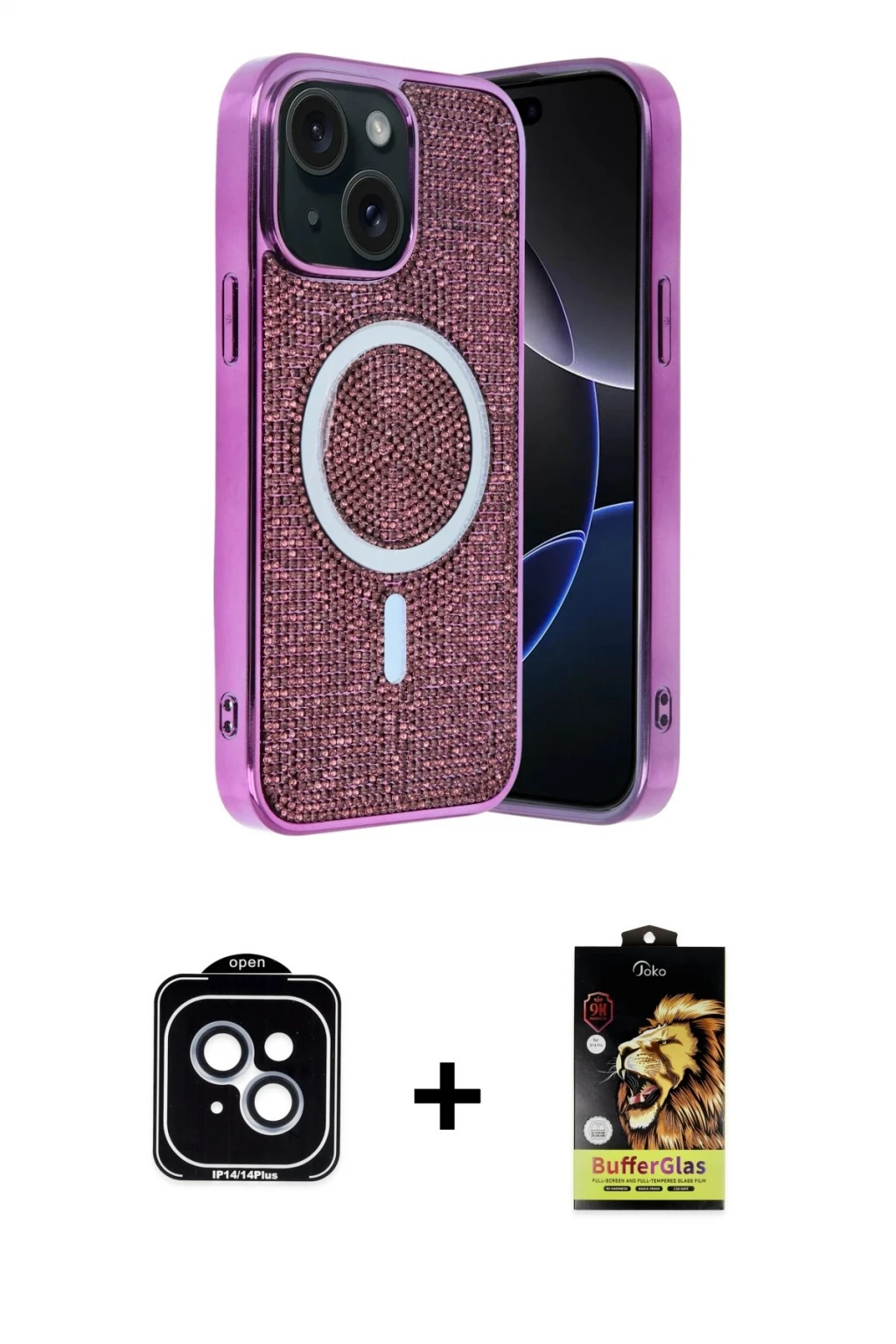 iPhone 14 Eksen Çizgi - Siyah Buffer Cam Ekran Koruyucu + Mavi PVD Metal Kamera Lens, iPhone 14 modeli için kılıf, ekran koruyucu ve kamera lens koruyucuyu bir araya getiren premium bir settir. Görünümde kılıfta Derin Mor tonu, lens koruyucuda Mavi detay ile bütünlüklü ve dikkat çekici bir stil sunar. Set; günlük kullanıma uygun şık koruma, ekranı çizilme ve darbelere karşı destekleyen koruma ve kamera bölümünü ekstra güvenceye alan koruma sağlayarak cihazınızı günlük kullanıma karşı destekler. Tek paketle hem estetik hem de kapsamlı korumayı pratik şekilde tamamlayabilirsiniz.