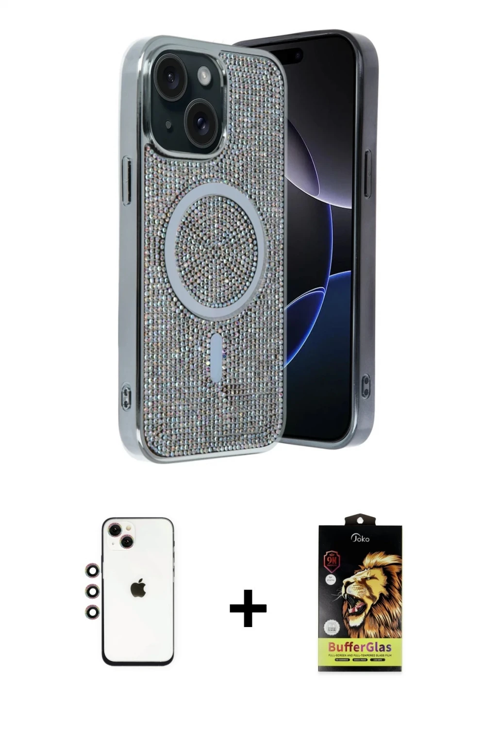 iPhone 14 Eksen Çizgi - Siyah Buffer Cam Ekran Koruyucu + Gökkuşağı Shine Kamera Lens, iPhone 14 modeli için kılıf, ekran koruyucu ve kamera lens koruyucuyu bir araya getiren premium bir settir. Görünümde kılıfta Derin Mor tonu, lens koruyucuda Gökkuşağı detay ile bütünlüklü ve dikkat çekici bir stil sunar. Set; günlük kullanıma uygun şık koruma, ekranı çizilme ve darbelere karşı destekleyen koruma ve kamera bölümünü ekstra güvenceye alan koruma sağlayarak cihazınızı günlük kullanıma karşı destekler. Tek paketle hem estetik hem de kapsamlı korumayı pratik şekilde tamamlayabilirsiniz.