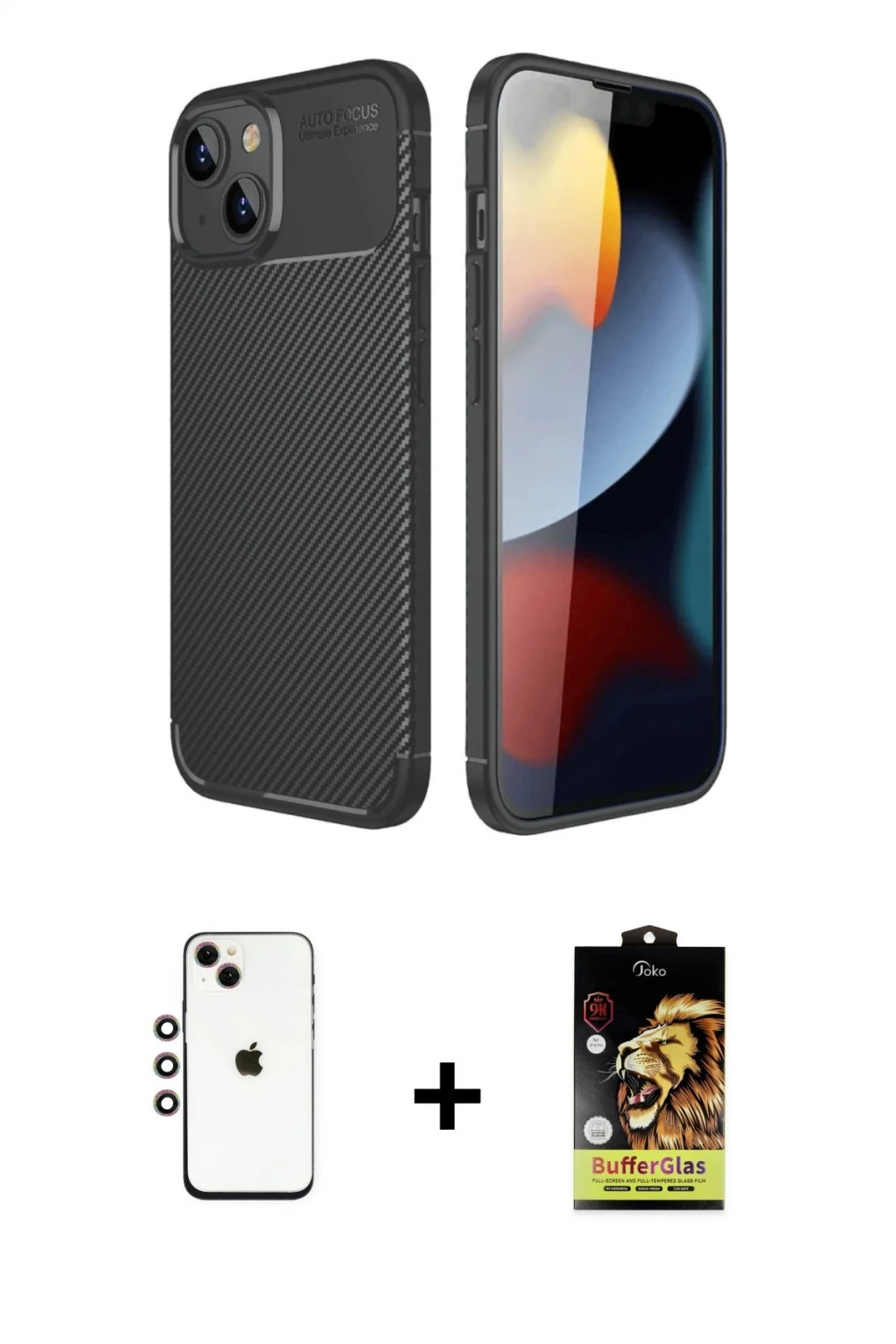 iPhone 14 Eksen Form Prime - Siyah Buffer Cam Ekran Koruyucu + Gökkuşağı Shine Kamera Lens, iPhone 14 modeli için kılıf, ekran koruyucu ve kamera lens koruyucuyu bir araya getiren premium bir settir. Görünümde kılıfta Siyah tonu, lens koruyucuda Gökkuşağı detay ile bütünlüklü ve dikkat çekici bir stil sunar. Set; günlük kullanıma uygun şık koruma, ekranı çizilme ve darbelere karşı destekleyen koruma ve kamera bölümünü ekstra güvenceye alan koruma sağlayarak cihazınızı günlük kullanıma karşı destekler. Tek paketle hem estetik hem de kapsamlı korumayı pratik şekilde tamamlayabilirsiniz.