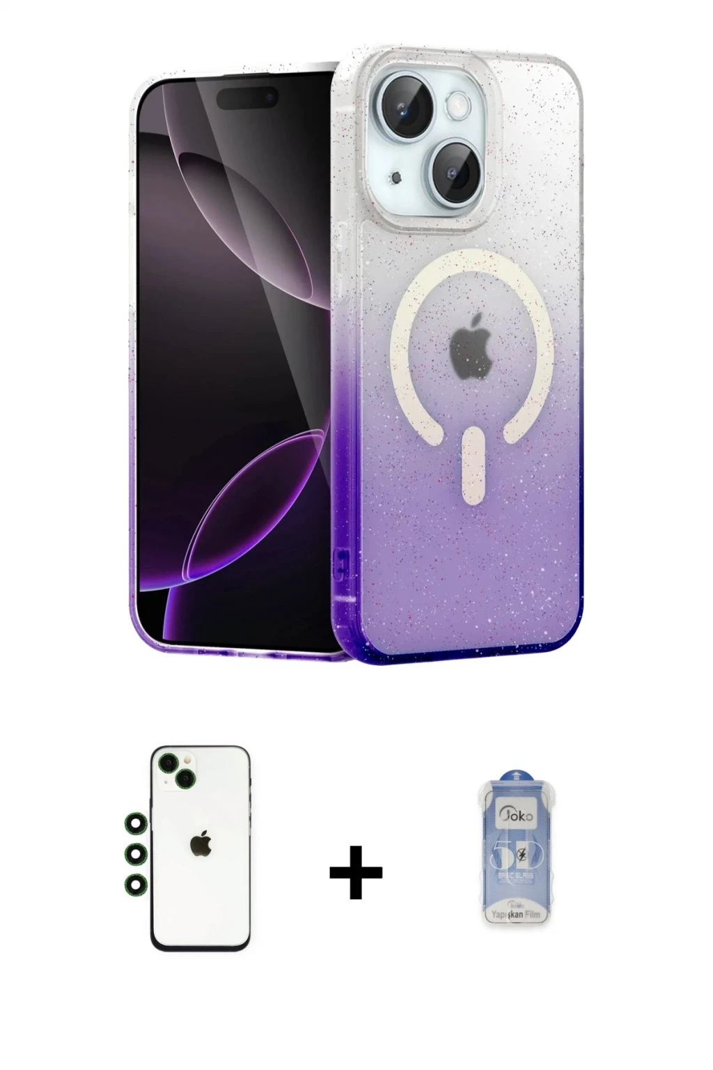 iPhone 14 Eksen Minimal Özel Seri - Siyah Joko Magic 5D Cam + Yeşil Shine Kamera Lens, iPhone 14 modeli için kılıf, ekran koruyucu ve kamera lens koruyucuyu bir araya getiren premium bir settir. Görünümde kılıfta Gold tonu, lens koruyucuda Yeşil detay ile bütünlüklü ve dikkat çekici bir stil sunar. Set; günlük kullanıma uygun şık koruma, ekranı çizilme ve darbelere karşı destekleyen koruma ve kamera bölümünü ekstra güvenceye alan koruma sağlayarak cihazınızı günlük kullanıma karşı destekler. Tek paketle hem estetik hem de kapsamlı korumayı pratik şekilde tamamlayabilirsiniz.