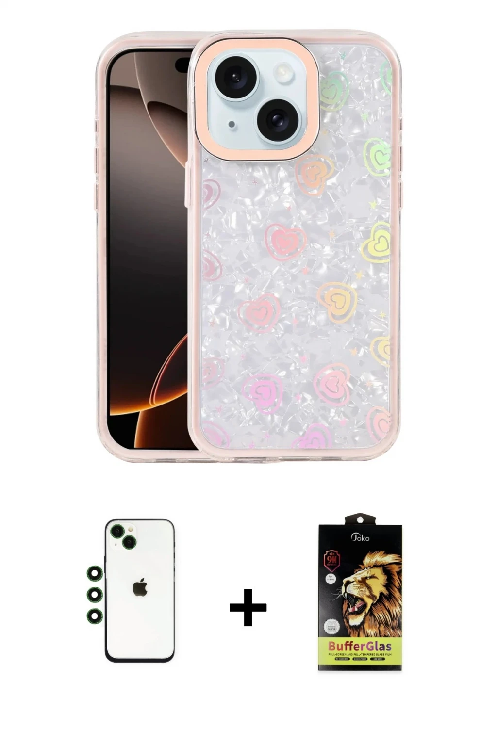 iPhone 14 Odak Prime - Siyah Buffer Cam Ekran Koruyucu + Yeşil Shine Kamera Lens, iPhone 14 modeli için kılıf, ekran koruyucu ve kamera lens koruyucuyu bir araya getiren premium bir settir. Görünümde kılıfta Yeşil tonu, lens koruyucuda Yeşil detay ile bütünlüklü ve dikkat çekici bir stil sunar. Set; günlük kullanıma uygun şık koruma, ekranı çizilme ve darbelere karşı destekleyen koruma ve kamera bölümünü ekstra güvenceye alan koruma sağlayarak cihazınızı günlük kullanıma karşı destekler. Tek paketle hem estetik hem de kapsamlı korumayı pratik şekilde tamamlayabilirsiniz.