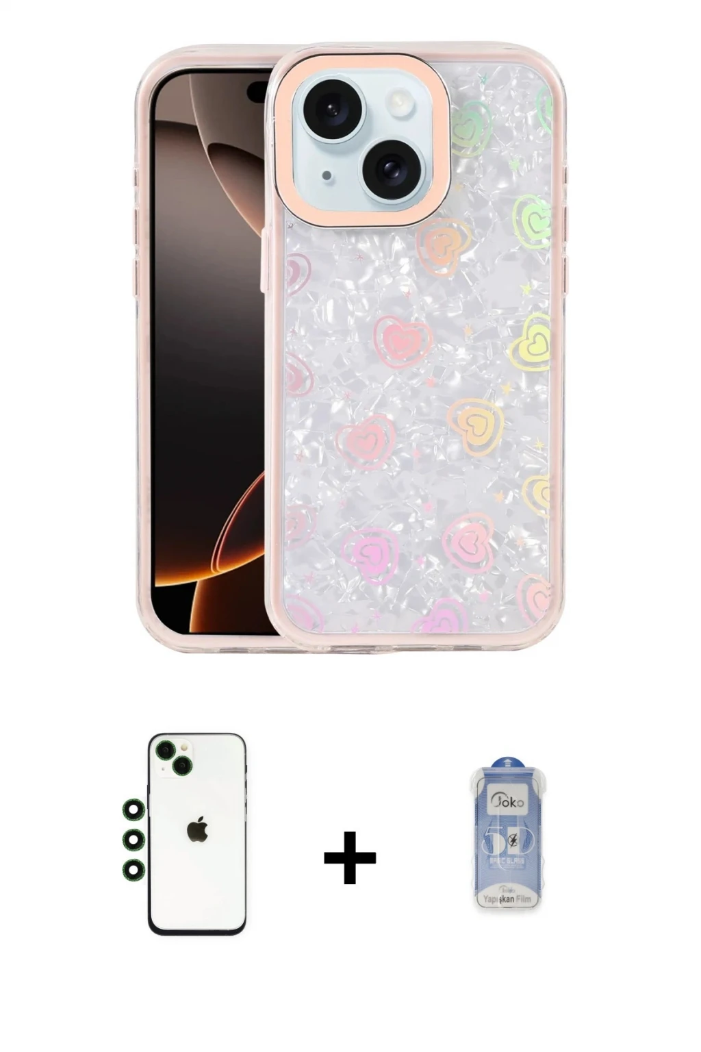 iPhone 14 Odak Prime - Siyah Joko Magic 5D Cam + Yeşil Shine Kamera Lens, iPhone 14 modeli için kılıf, ekran koruyucu ve kamera lens koruyucuyu bir araya getiren premium bir settir. Görünümde kılıfta Yeşil tonu, lens koruyucuda Yeşil detay ile bütünlüklü ve dikkat çekici bir stil sunar. Set; günlük kullanıma uygun şık koruma, ekranı çizilme ve darbelere karşı destekleyen koruma ve kamera bölümünü ekstra güvenceye alan koruma sağlayarak cihazınızı günlük kullanıma karşı destekler. Tek paketle hem estetik hem de kapsamlı korumayı pratik şekilde tamamlayabilirsiniz.