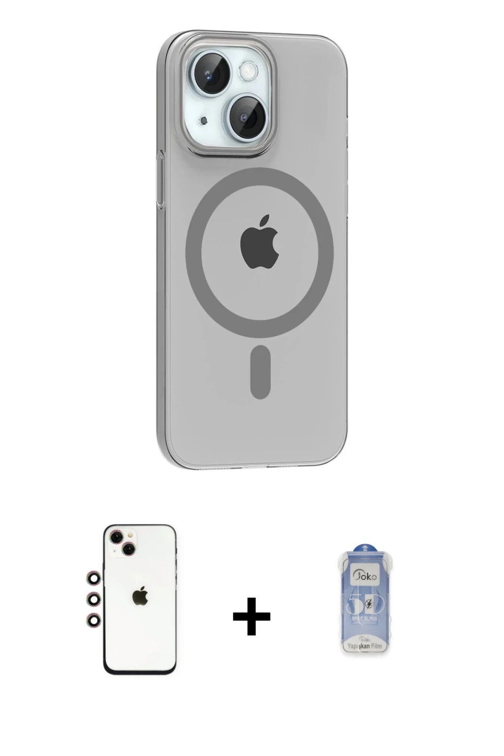 iPhone 14 Pusula Form Özel Seri - Siyah Joko Magic 5D Cam + Gökkuşağı Shine Kamera Lens, iPhone 14 modeli için kılıf, ekran koruyucu ve kamera lens koruyucuyu bir araya getiren premium bir settir. Görünümde kılıfta Siyah tonu, lens koruyucuda Gökkuşağı detay ile bütünlüklü ve dikkat çekici bir stil sunar. Set; günlük kullanıma uygun şık koruma, ekranı çizilme ve darbelere karşı destekleyen koruma ve kamera bölümünü ekstra güvenceye alan koruma sağlayarak cihazınızı günlük kullanıma karşı destekler. Tek paketle hem estetik hem de kapsamlı korumayı pratik şekilde tamamlayabilirsiniz.