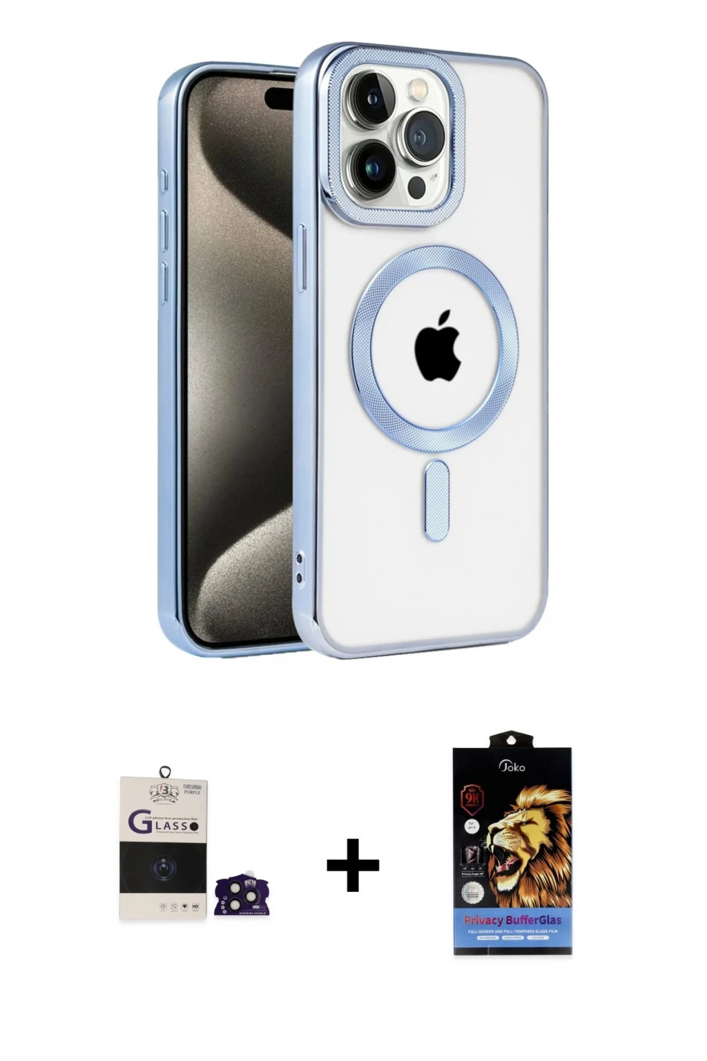 ieg™ iPhone 15 Pro Max Kılıf Akış Çizgi Koleksiyonu - Siyah Joko Magic 5D Cam + PVD Metal Kamera Lens - GS