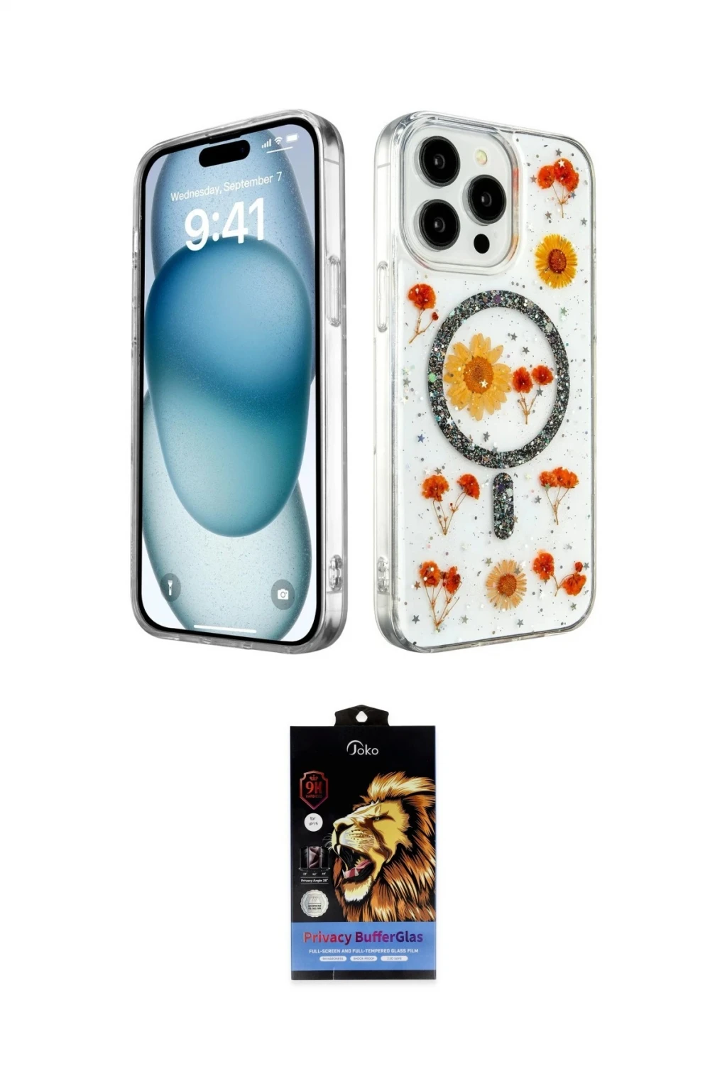 iPhone 14 Pro Max Kılıf Kozmos Doku - Siyah Buffer Hayalet Cam Ekran Koruyucu, iPhone 14 Pro Max modeli için kılıf ve ekran koruyucuyu bir araya getiren uyumlu bir settir. Kılıfta Siyah tonu ile görünümü tamamlar, ekran koruyucu ile günlük kullanımda dengeli koruma sunar. Newface iPhone 14 Pro Max Kılıf Daisy Simli Magsafe Kapak - Siyah cihazın gövdesini desteklerken, Joko iPhone 14 Pro Max Buffer Hayalet Cam Ekran Koruyucu - Siyah ekranı çizilme ve darbelere karşı tamamlayıcı koruma sağlar. Tek paketle hem görünümü hem de temel korumayı hızlıca tamamlayabilirsiniz.