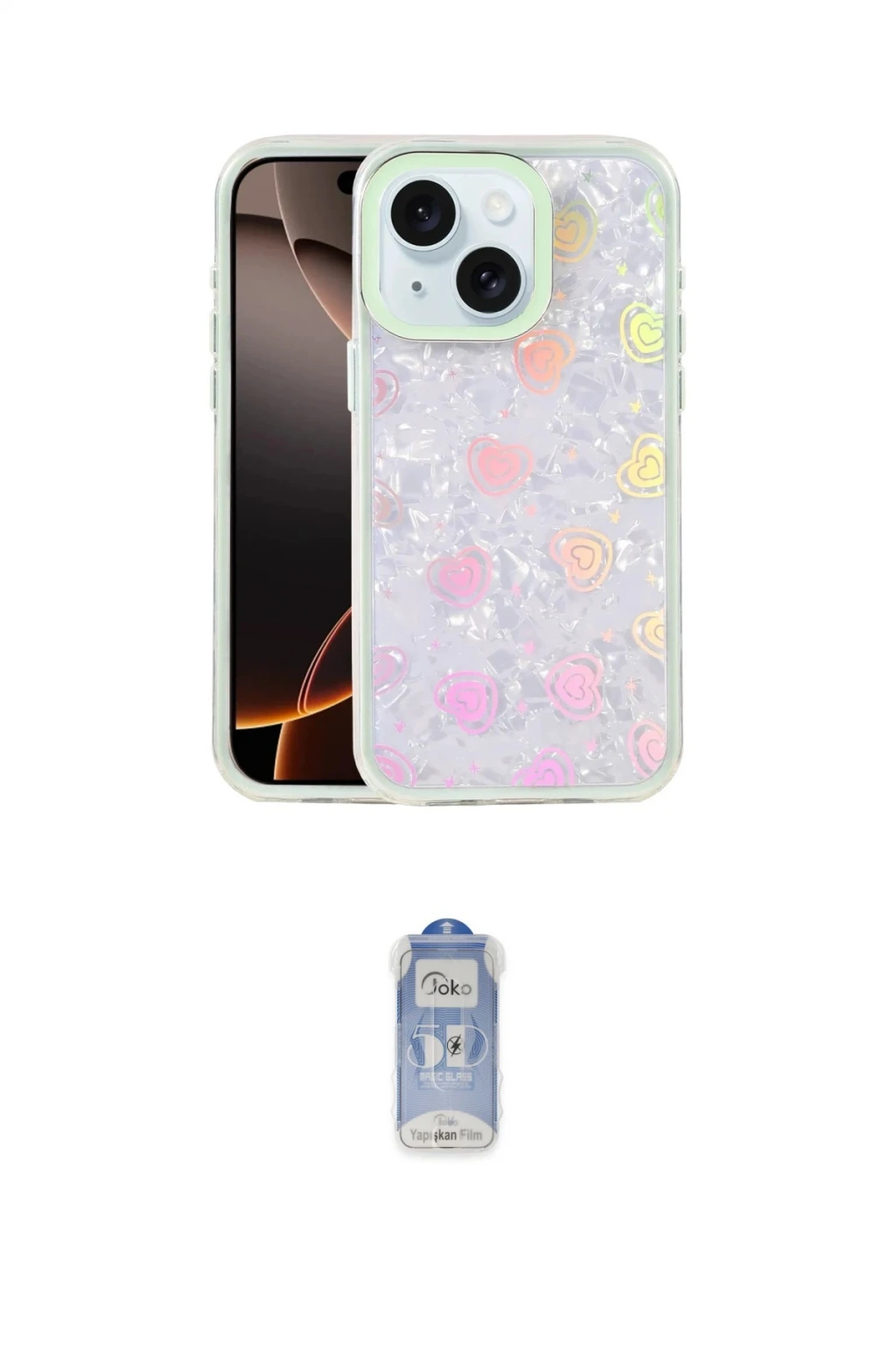 iPhone 15 Kılıf Odak Prime - Siyah Joko Magic 5D Cam, iPhone 15 modeli için kılıf ve ekran koruyucuyu bir araya getiren uyumlu bir settir. Kılıfta Yeşil tonu ile görünümü tamamlar, ekran koruyucu ile günlük kullanımda dengeli koruma sunar. Newface Apple iPhone 15 Lumi Desenli Kapak - Yeşil cihazın gövdesini desteklerken, Joko iPhone 15 Joko Magic 5D Cam ekranı çizilme ve darbelere karşı tamamlayıcı koruma sağlar. Tek paketle hem görünümü hem de temel korumayı hızlıca tamamlayabilirsiniz.
