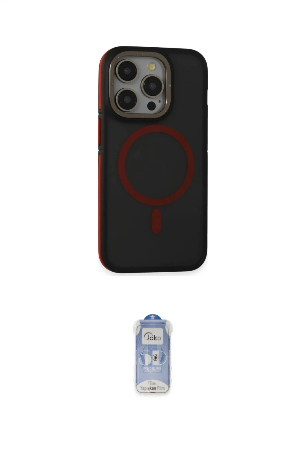 iPhone 15 Pro Kılıf Ahenk Form Serisi - Siyah Joko Magic 5D Cam, iPhone 15 Pro modeli için kılıf ve ekran koruyucuyu bir araya getiren uyumlu bir settir. Kılıfta Siyah tonu ile görünümü tamamlar, ekran koruyucu ile günlük kullanımda dengeli koruma sunar. Joko iPhone 15 Pro Rocky Magsafe Kapak - Siyah-Kırmızı cihazın gövdesini desteklerken, Joko iPhone 15 Pro Joko Magic 5D Cam ekranı çizilme ve darbelere karşı tamamlayıcı koruma sağlar. Tek paketle hem görünümü hem de temel korumayı hızlıca tamamlayabilirsiniz.