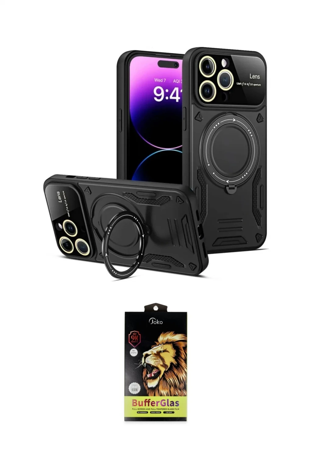 iPhone 15 Pro Kılıf Kıvılcım Modern Serisi - Siyah Buffer Cam Ekran Koruyucu, iPhone 15 Pro modeli için kılıf ve ekran koruyucuyu bir araya getiren uyumlu bir settir. Kılıfta Siyah tonu ile görünümü tamamlar, ekran koruyucu ile günlük kullanımda dengeli koruma sunar. Newface iPhone 15 Pro Kılıf Joy Lens Standlı Kapak - Siyah cihazın gövdesini desteklerken, Joko iPhone 15 Pro Buffer Cam Ekran Koruyucu - Siyah ekranı çizilme ve darbelere karşı tamamlayıcı koruma sağlar. Tek paketle hem görünümü hem de temel korumayı hızlıca tamamlayabilirsiniz.