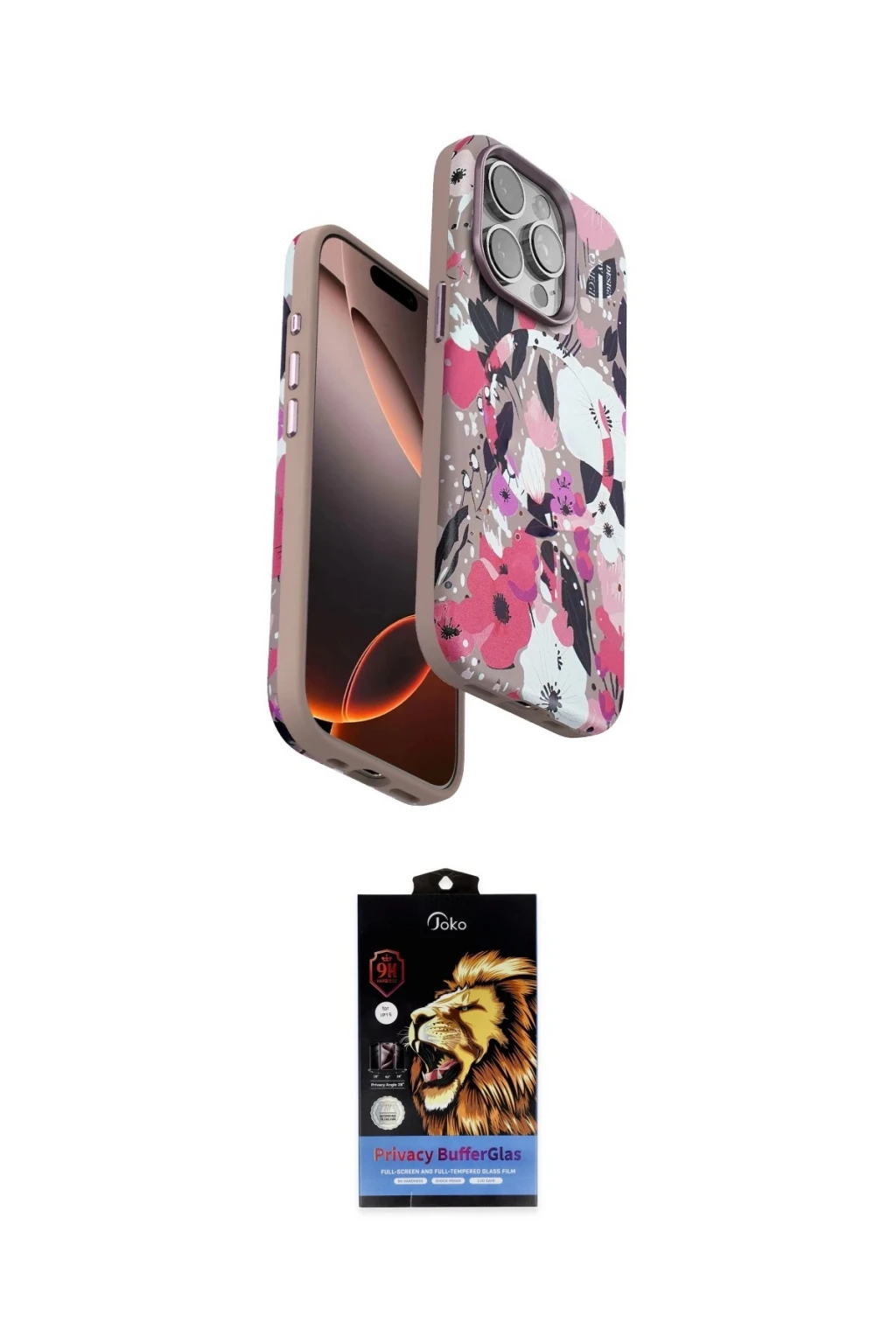 iPhone 15 Pro Kılıf Siluet Doku - Siyah Buffer Hayalet Cam Ekran Koruyucu, iPhone 15 Pro modeli için kılıf ve ekran koruyucuyu bir araya getiren uyumlu bir settir. Kılıfta Siyah tonu ile görünümü tamamlar, ekran koruyucu ile günlük kullanımda dengeli koruma sunar. Onegif iPhone 15 Pro Flower Series Magsafe Kapak - Siyah cihazın gövdesini desteklerken, Joko iPhone 15 Pro Buffer Hayalet Cam Ekran Koruyucu - Siyah ekranı çizilme ve darbelere karşı tamamlayıcı koruma sağlar. Tek paketle hem görünümü hem de temel korumayı hızlıca tamamlayabilirsiniz.