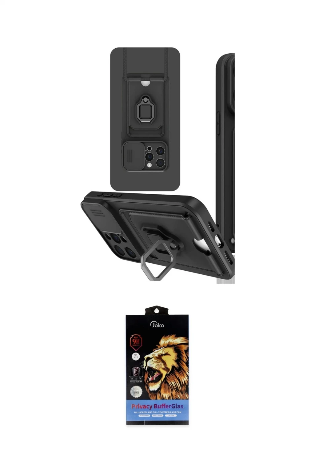 iPhone 15 Pro Kılıf Vadi Form Prime - Siyah Buffer Hayalet Cam Ekran Koruyucu, iPhone 15 Pro modeli için kılıf ve ekran koruyucuyu bir araya getiren uyumlu bir settir. Kılıfta Siyah tonu ile görünümü tamamlar, ekran koruyucu ile günlük kullanımda dengeli koruma sunar. Newface iPhone 15 Pro Kılıf Zuma Kartvizitli Yüzüklü Silikon - Siyah cihazın gövdesini desteklerken, Joko iPhone 15 Pro Buffer Hayalet Cam Ekran Koruyucu - Siyah ekranı çizilme ve darbelere karşı tamamlayıcı koruma sağlar. Tek paketle hem görünümü hem de temel korumayı hızlıca tamamlayabilirsiniz.