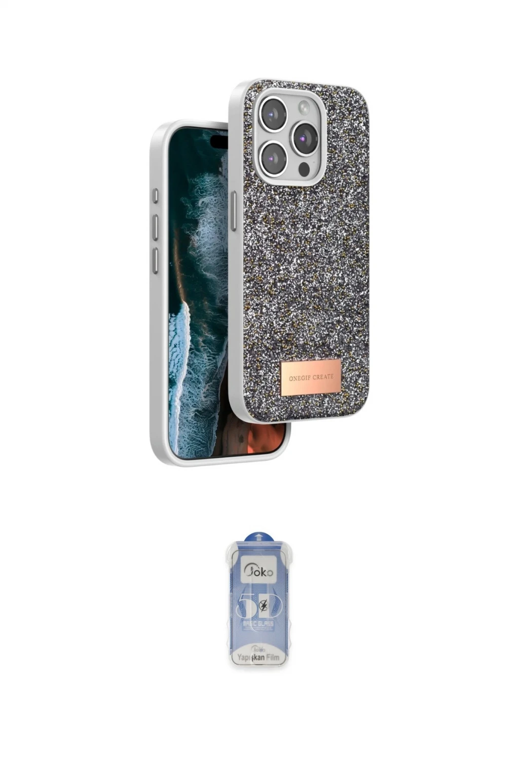 iPhone 15 Pro Kılıf Vadi Klasik Serisi - Siyah Joko Magic 5D Cam, iPhone 15 Pro modeli için kılıf ve ekran koruyucuyu bir araya getiren uyumlu bir settir. Kılıfta Gümüş tonu ile görünümü tamamlar, ekran koruyucu ile günlük kullanımda dengeli koruma sunar. Onegif iPhone 15 Pro Bright Simli Kapak - Gümüş cihazın gövdesini desteklerken, Joko iPhone 15 Pro Joko Magic 5D Cam ekranı çizilme ve darbelere karşı tamamlayıcı koruma sağlar. Tek paketle hem görünümü hem de temel korumayı hızlıca tamamlayabilirsiniz.