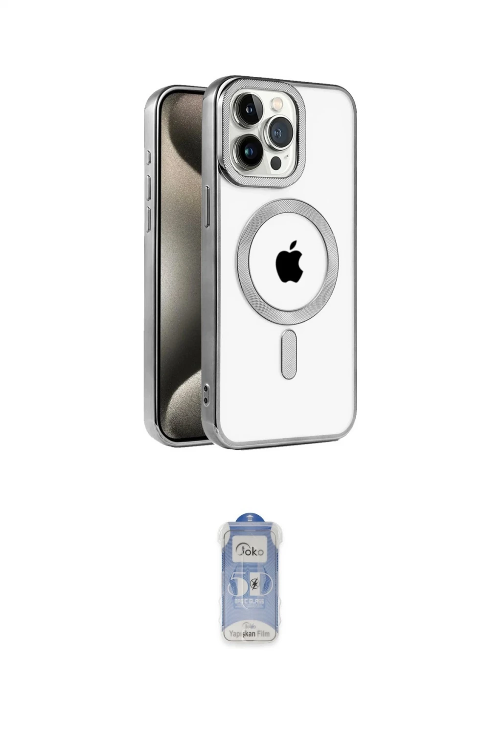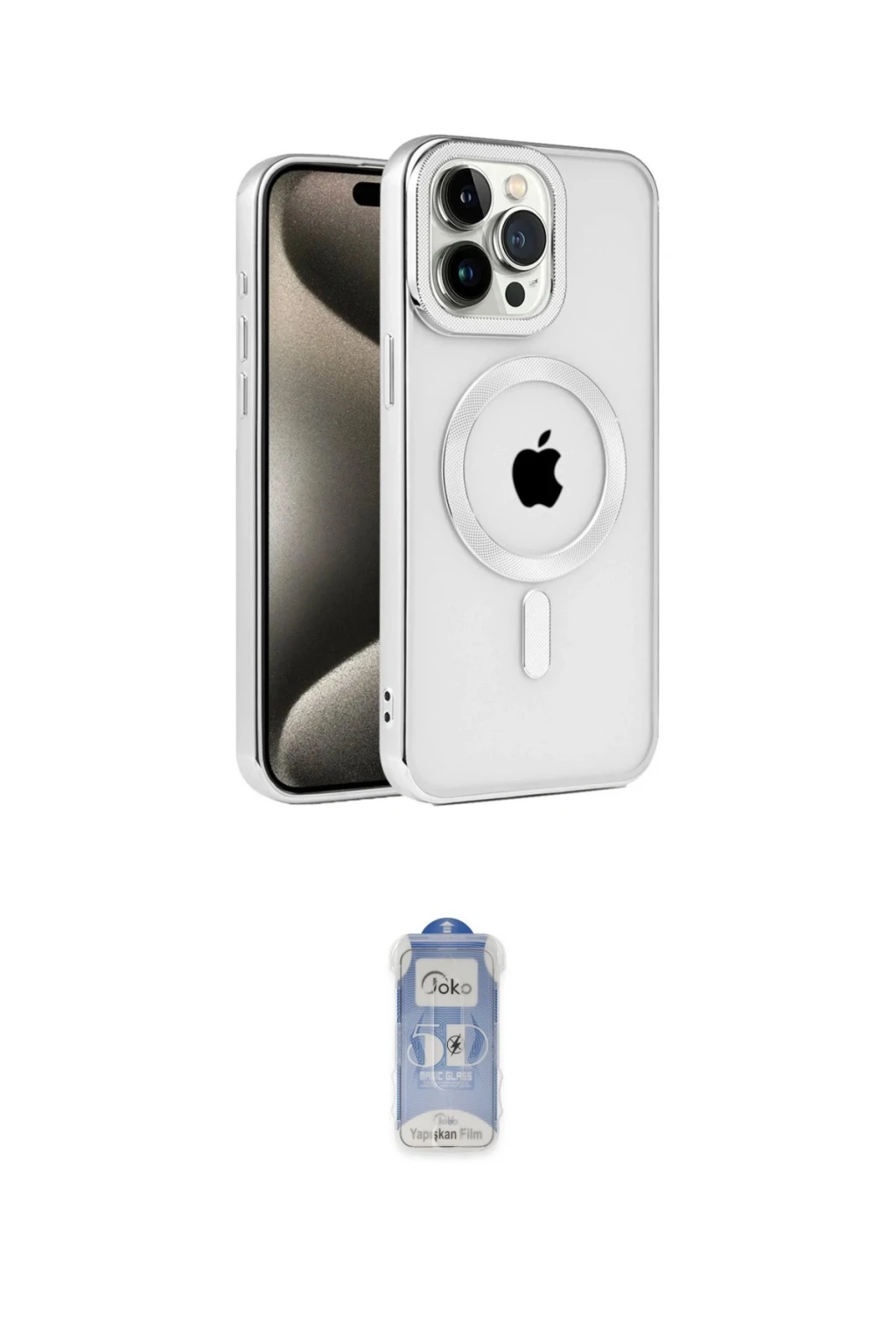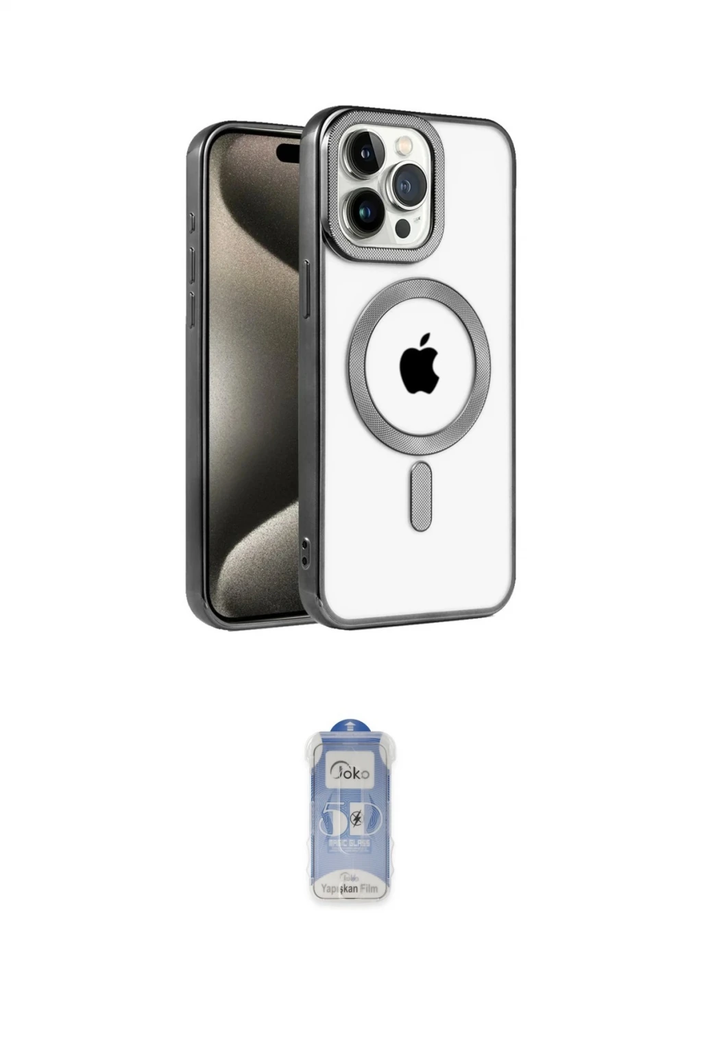 iPhone 15 Pro Max Kılıf Eksen Form Koleksiyonu - Siyah Joko Magic 5D Cam, iPhone 15 Pro Max modeli için kılıf ve ekran koruyucuyu bir araya getiren uyumlu bir settir. Kılıfta Gümüş tonu ile görünümü tamamlar, ekran koruyucu ile günlük kullanımda dengeli koruma sunar. Newface iPhone 15 Pro Max Kılıf Kronos Magsafe Kapak - Gümüş cihazın gövdesini desteklerken, Joko iPhone 15 Pro Max Joko Magic 5D Cam ekranı çizilme ve darbelere karşı tamamlayıcı koruma sağlar. Tek paketle hem görünümü hem de temel korumayı hızlıca tamamlayabilirsiniz.