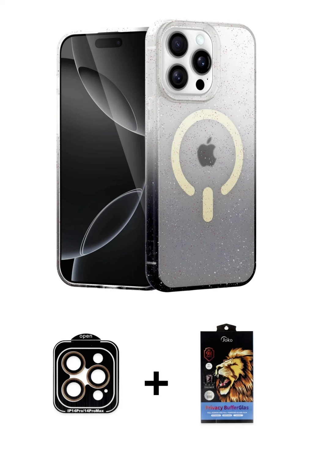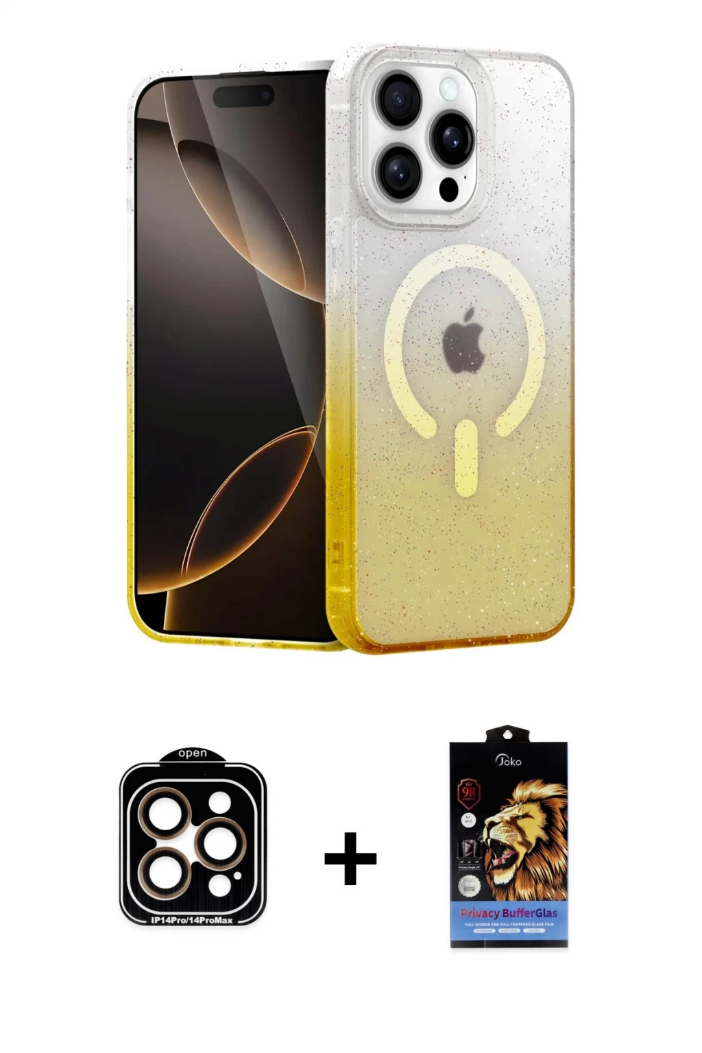 iPhone 15 Pro Max Eksen Minimal Özel Seri - Siyah Buffer Hayalet Cam Ekran Koruyucu + Turuncu PVD Metal Kamera Lens, iPhone 15 Pro Max modeli için kılıf, ekran koruyucu ve kamera lens koruyucuyu bir araya getiren premium bir settir. Görünümde kılıfta Gold tonu, lens koruyucuda Turuncu detay ile bütünlüklü ve dikkat çekici bir stil sunar. Set; günlük kullanıma uygun şık koruma, ekranı çizilme ve darbelere karşı destekleyen koruma ve kamera bölümünü ekstra güvenceye alan koruma sağlayarak cihazınızı günlük kullanıma karşı destekler. Tek paketle hem estetik hem de kapsamlı korumayı pratik şekilde tamamlayabilirsiniz.