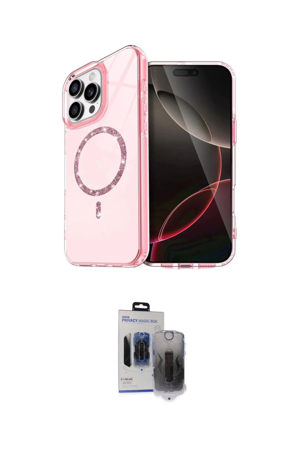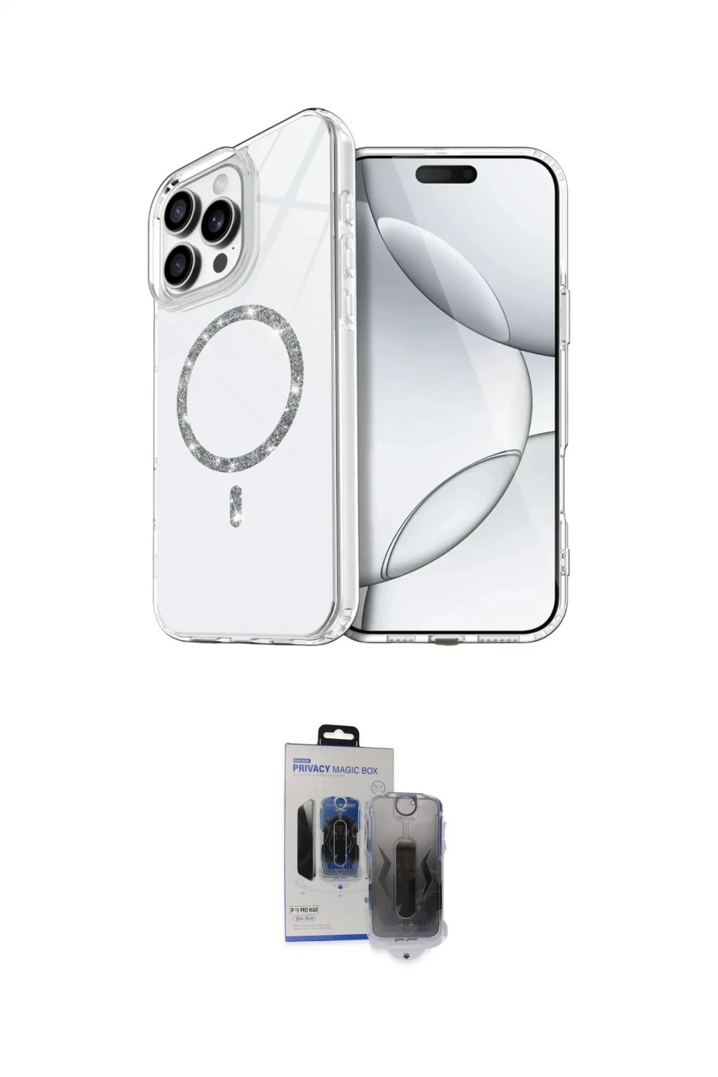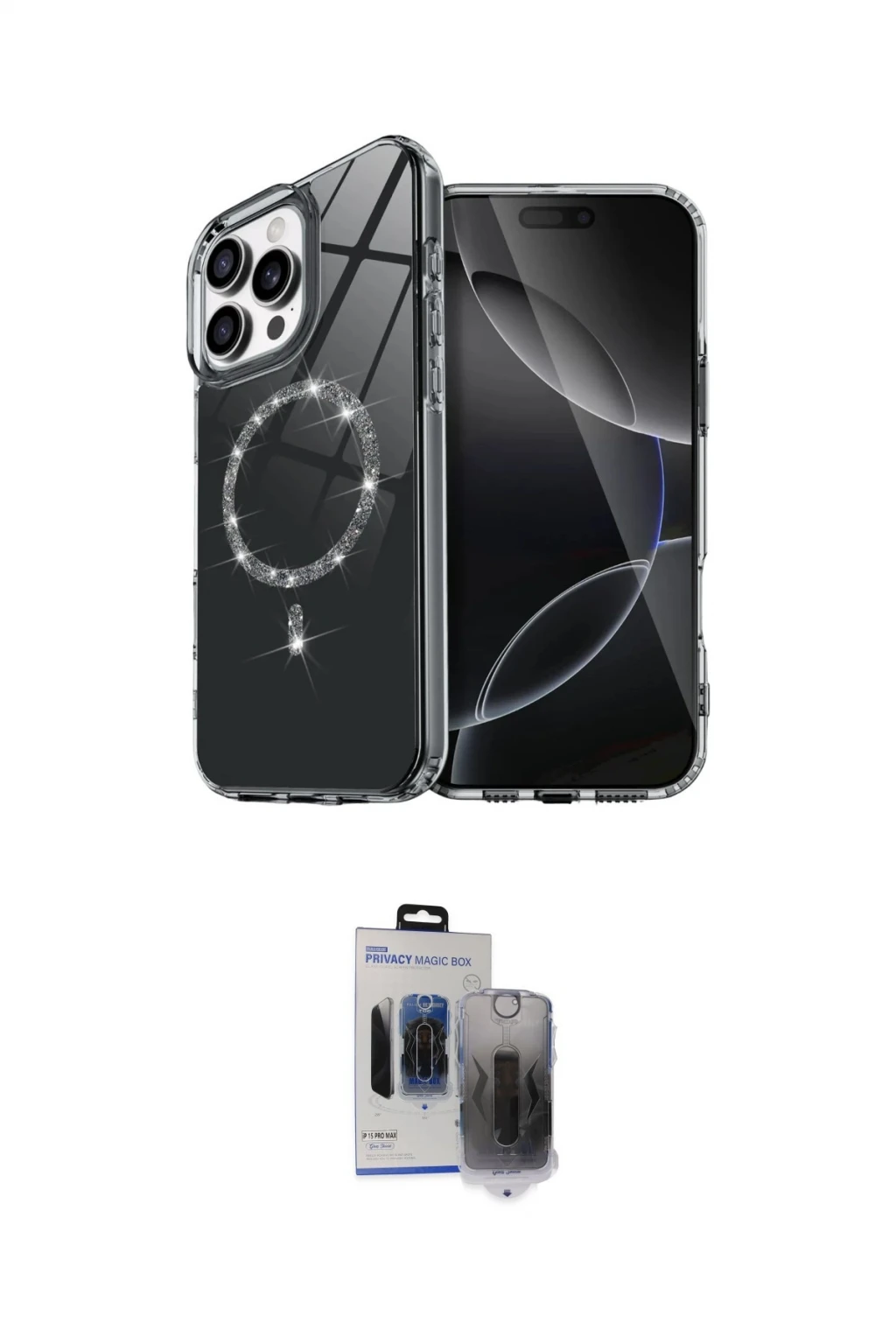 iPhone 15 Pro Max Kılıf Kıvılcım Form Prime - Siyah Vanessa Magic Hayalet Cam, iPhone 15 Pro Max modeli için kılıf ve ekran koruyucuyu bir araya getiren uyumlu bir settir. Kılıfta Mavi tonu ile görünümü tamamlar, ekran koruyucu ile günlük kullanımda dengeli koruma sunar. Newface Apple iPhone 15 Pro Max Live Diamond Magsafe Kapak - Mavi cihazın gövdesini desteklerken, Newface iPhone 15 Pro Max Vanessa Magic Hayalet Cam ekranı çizilme ve darbelere karşı tamamlayıcı koruma sağlar. Tek paketle hem görünümü hem de temel korumayı hızlıca tamamlayabilirsiniz.