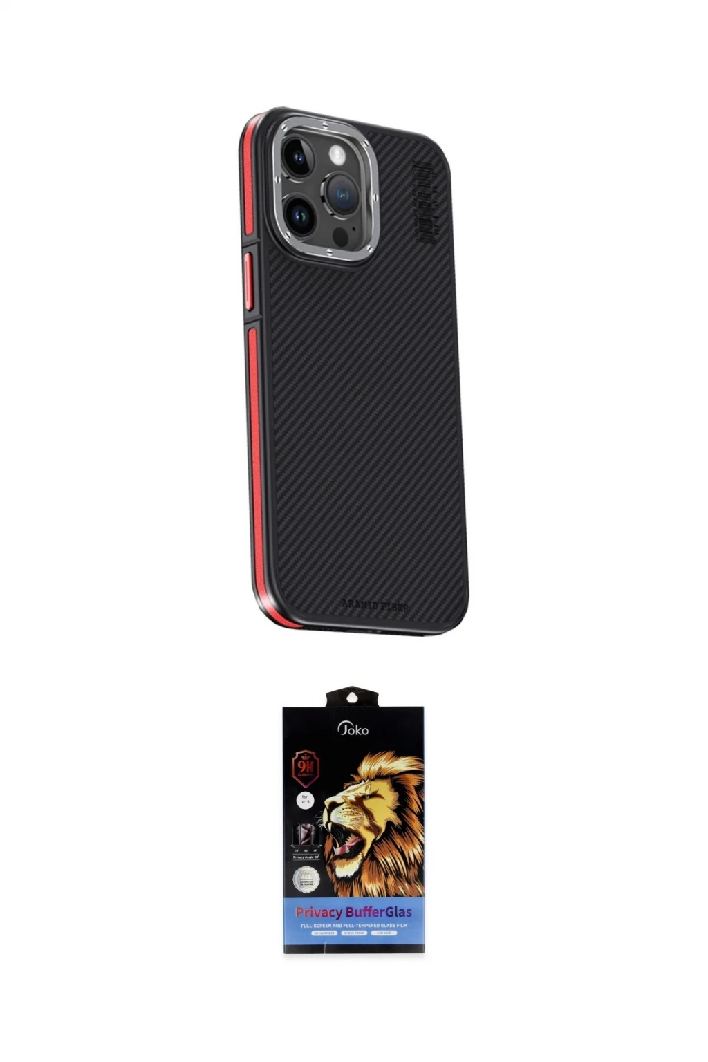 iPhone 15 Pro Max Kılıf Kıvılcım Modern Özel Seri - Siyah Buffer Hayalet Cam Ekran Koruyucu, iPhone 15 Pro Max modeli için kılıf ve ekran koruyucuyu bir araya getiren uyumlu bir settir. Kılıfta Lacivert tonu ile görünümü tamamlar, ekran koruyucu ile günlük kullanımda dengeli koruma sunar. Joko iPhone 15 Pro Max Kılıf Aramid 600D Kevlar Karbon Fiber Magsafe Kapak - Lacivert cihazın gövdesini desteklerken, Joko iPhone 15 Pro Max Buffer Hayalet Cam Ekran Koruyucu - Siyah ekranı çizilme ve darbelere karşı tamamlayıcı koruma sağlar. Tek paketle hem görünümü hem de temel korumayı hızlıca tamamlayabilirsiniz.