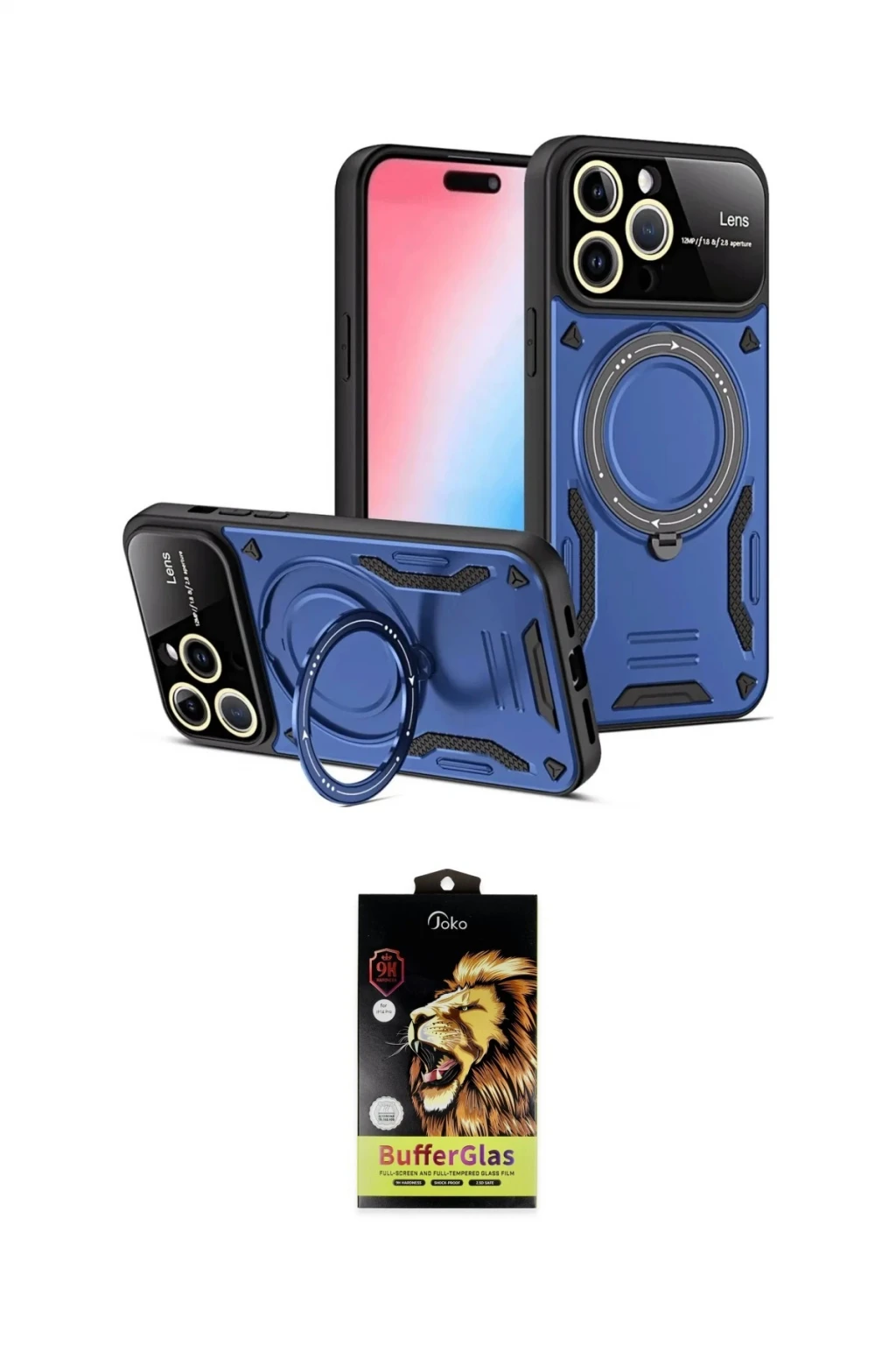 iPhone 15 Pro Max Kılıf Kıvılcım Modern Serisi - Siyah Buffer Cam Ekran Koruyucu, iPhone 15 Pro Max modeli için kılıf ve ekran koruyucuyu bir araya getiren uyumlu bir settir. Kılıfta Lacivert tonu ile görünümü tamamlar, ekran koruyucu ile günlük kullanımda dengeli koruma sunar. Newface iPhone 15 Pro Max Joy Lens Standlı Kapak - Lacivert cihazın gövdesini desteklerken, Joko iPhone 15 Pro Max Buffer Cam Ekran Koruyucu - Siyah ekranı çizilme ve darbelere karşı tamamlayıcı koruma sağlar. Tek paketle hem görünümü hem de temel korumayı hızlıca tamamlayabilirsiniz.