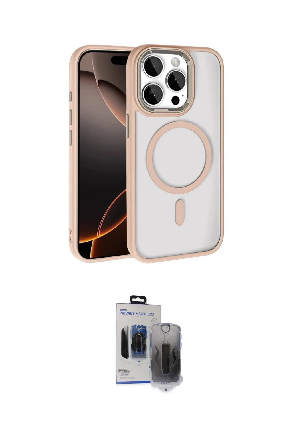 iPhone 15 Pro Max Kılıf Kıvılcım Prime - Siyah Vanessa Magic Hayalet Cam, iPhone 15 Pro Max modeli için kılıf ve ekran koruyucuyu bir araya getiren uyumlu bir settir. Kılıfta Derin Mor tonu ile görünümü tamamlar, ekran koruyucu ile günlük kullanımda dengeli koruma sunar. Joko Apple iPhone 15 Pro Max Terea Magsafe Kapak - Derin Mor cihazın gövdesini desteklerken, Newface iPhone 15 Pro Max Vanessa Magic Hayalet Cam ekranı çizilme ve darbelere karşı tamamlayıcı koruma sağlar. Tek paketle hem görünümü hem de temel korumayı hızlıca tamamlayabilirsiniz.