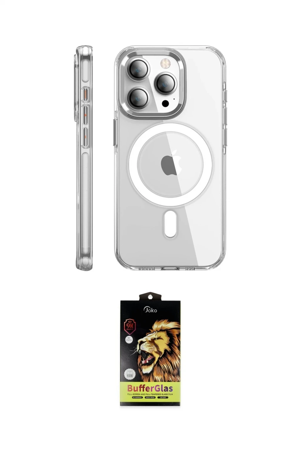 iPhone 15 Pro Max Kılıf Nova Doku - Siyah Buffer Cam Ekran Koruyucu, iPhone 15 Pro Max modeli için kılıf ve ekran koruyucuyu bir araya getiren uyumlu bir settir. Kılıfta Şeffaf tonu ile görünümü tamamlar, ekran koruyucu ile günlük kullanımda dengeli koruma sunar. Joko iPhone 15 Pro Max Kılıf Crystal Magsafe Kapak - Şeffaf cihazın gövdesini desteklerken, Joko iPhone 15 Pro Max Buffer Cam Ekran Koruyucu - Siyah ekranı çizilme ve darbelere karşı tamamlayıcı koruma sağlar. Tek paketle hem görünümü hem de temel korumayı hızlıca tamamlayabilirsiniz.