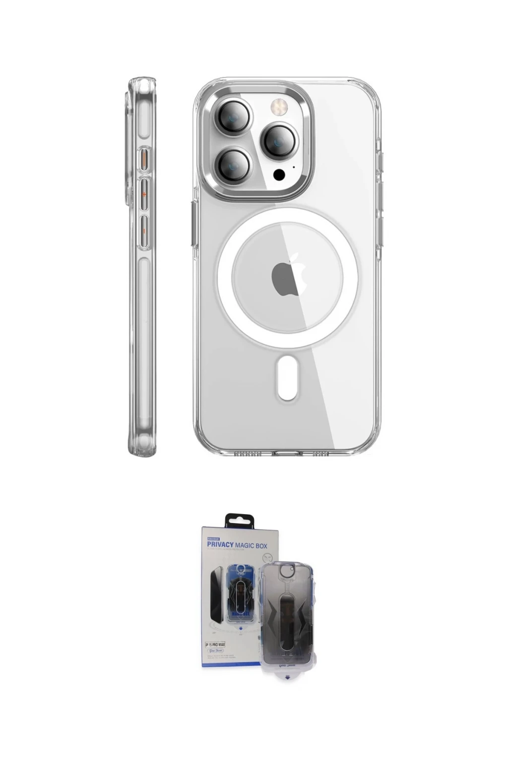 iPhone 15 Pro Max Kılıf Nova Doku - Siyah Vanessa Magic Hayalet Cam, iPhone 15 Pro Max modeli için kılıf ve ekran koruyucuyu bir araya getiren uyumlu bir settir. Kılıfta Şeffaf tonu ile görünümü tamamlar, ekran koruyucu ile günlük kullanımda dengeli koruma sunar. Joko iPhone 15 Pro Max Kılıf Crystal Magsafe Kapak - Şeffaf cihazın gövdesini desteklerken, Newface iPhone 15 Pro Max Vanessa Magic Hayalet Cam ekranı çizilme ve darbelere karşı tamamlayıcı koruma sağlar. Tek paketle hem görünümü hem de temel korumayı hızlıca tamamlayabilirsiniz.