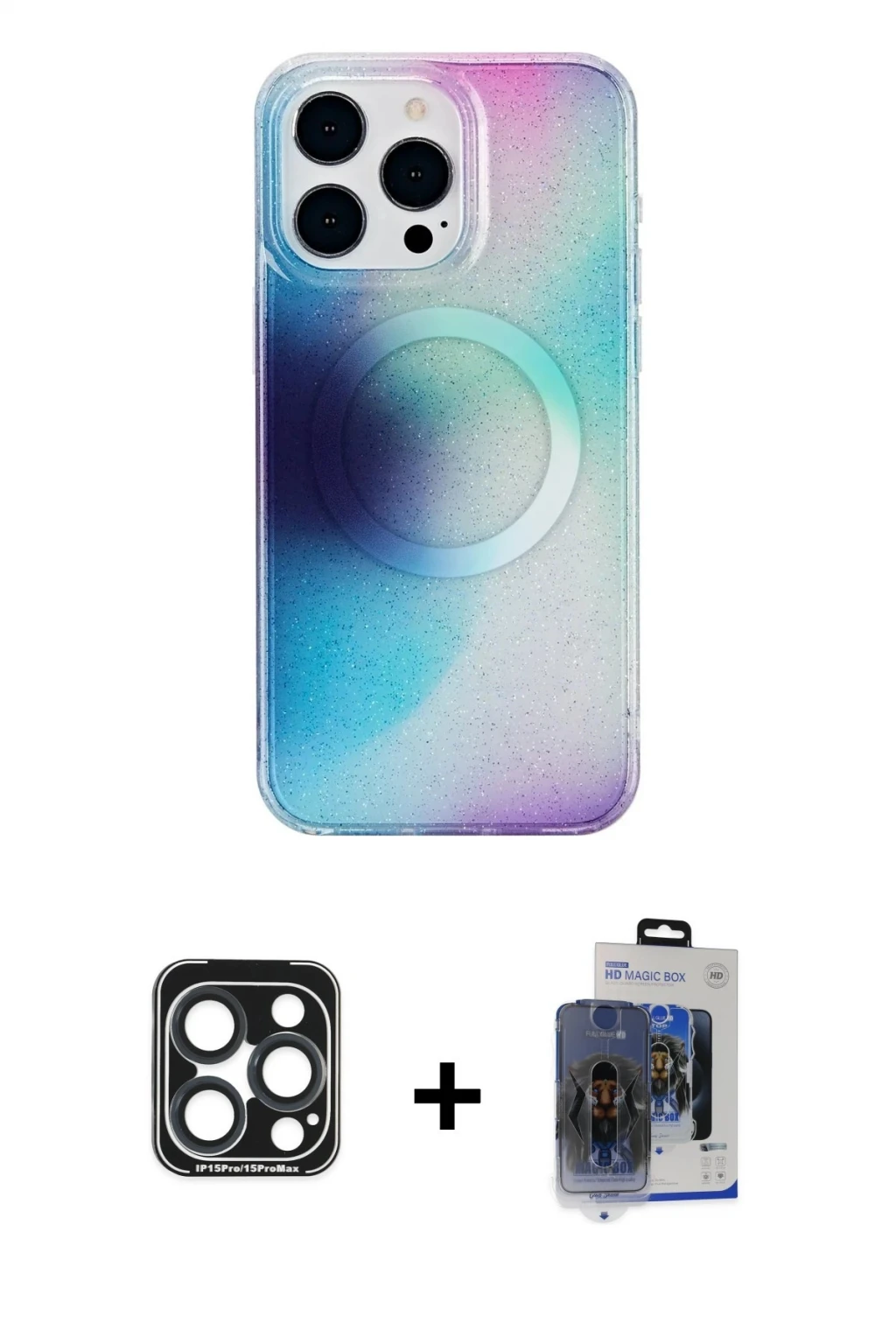 iPhone 15 Pro Max Pusula Form - Siyah Vanessa Magic Cam + Lacivert PVD Metal Kamera Lens, iPhone 15 Pro Max modeli için kılıf, ekran koruyucu ve kamera lens koruyucuyu bir araya getiren premium bir settir. Görünümde kılıfta Desen 1 tonu, lens koruyucuda Lacivert detay ile bütünlüklü ve dikkat çekici bir stil sunar. Set; günlük kullanıma uygun şık koruma, ekranı çizilme ve darbelere karşı destekleyen koruma ve kamera bölümünü ekstra güvenceye alan koruma sağlayarak cihazınızı günlük kullanıma karşı destekler. Tek paketle hem estetik hem de kapsamlı korumayı pratik şekilde tamamlayabilirsiniz.