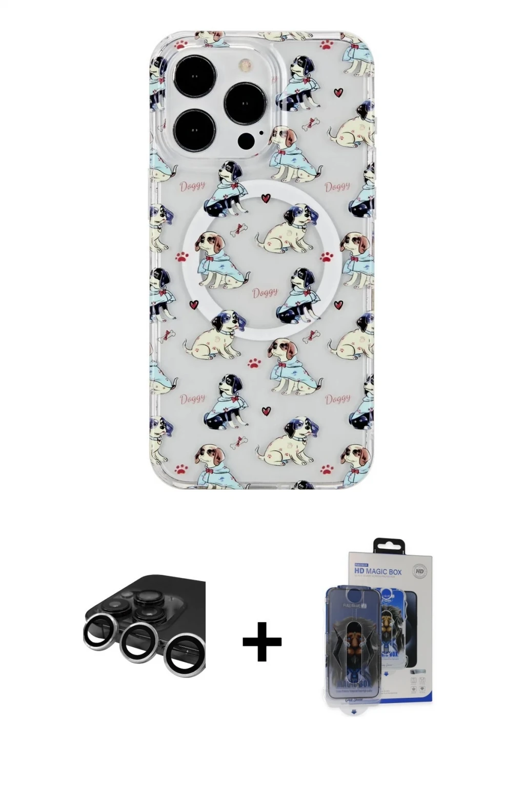 iPhone 15 Pro Max Pusula Form - Siyah Vanessa Magic Cam + Gümüş Raze Metal Kamera Lens, iPhone 15 Pro Max modeli için kılıf, ekran koruyucu ve kamera lens koruyucuyu bir araya getiren premium bir settir. Görünümde kılıfta Desen 1 tonu, lens koruyucuda Gümüş detay ile bütünlüklü ve dikkat çekici bir stil sunar. Set; günlük kullanıma uygun şık koruma, ekranı çizilme ve darbelere karşı destekleyen koruma ve kamera bölümünü ekstra güvenceye alan koruma sağlayarak cihazınızı günlük kullanıma karşı destekler. Tek paketle hem estetik hem de kapsamlı korumayı pratik şekilde tamamlayabilirsiniz.