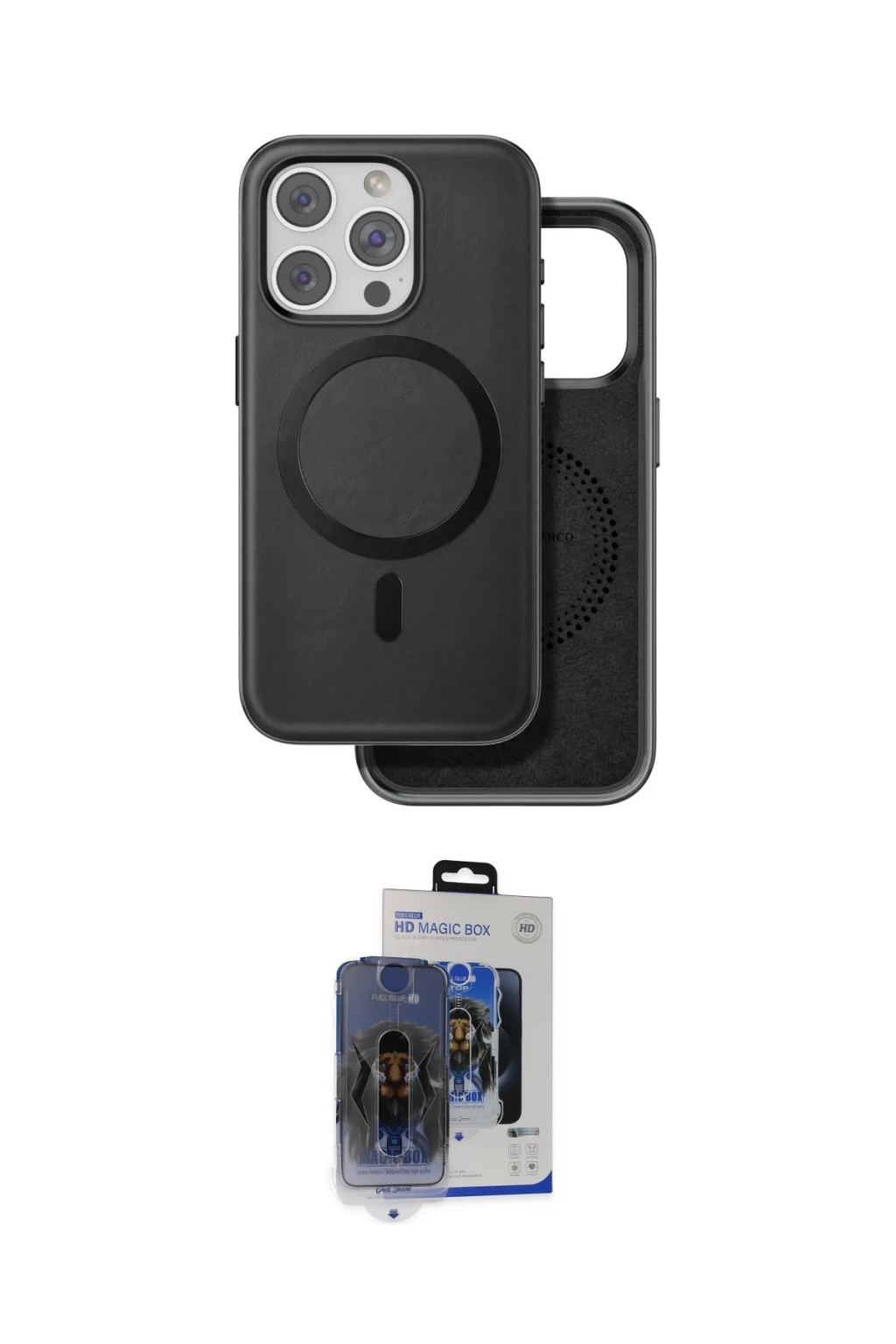 iPhone 15 Pro Max Kılıf Pusula Işık Koleksiyonu - Siyah Vanessa Magic Cam, iPhone 15 Pro Max modeli için kılıf ve ekran koruyucuyu bir araya getiren uyumlu bir settir. Kılıfta Siyah tonu ile görünümü tamamlar, ekran koruyucu ile günlük kullanımda dengeli koruma sunar. Venco iPhone 15 Pro Max Puskas Magsafe Kapak - Siyah cihazın gövdesini desteklerken, Newface iPhone 15 Pro Max Vanessa Magic Cam ekranı çizilme ve darbelere karşı tamamlayıcı koruma sağlar. Tek paketle hem görünümü hem de temel korumayı hızlıca tamamlayabilirsiniz.
