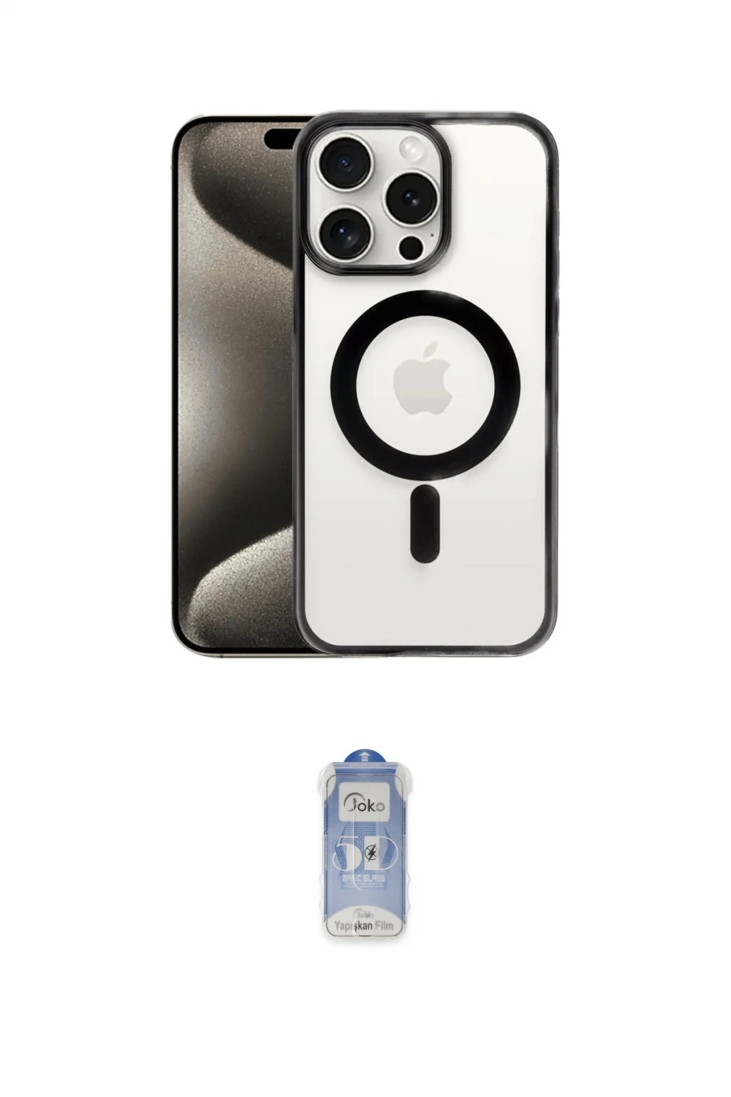 iPhone 15 Pro Max Kılıf Siluet Çizgi Serisi - Siyah Joko Magic 5D Cam, iPhone 15 Pro Max modeli için kılıf ve ekran koruyucuyu bir araya getiren uyumlu bir settir. Kılıfta Siyah tonu ile görünümü tamamlar, ekran koruyucu ile günlük kullanımda dengeli koruma sunar. Newface iPhone 15 Pro Max Kılıf Erozi Magsafe Kapak - Siyah cihazın gövdesini desteklerken, Joko iPhone 15 Pro Max Joko Magic 5D Cam ekranı çizilme ve darbelere karşı tamamlayıcı koruma sağlar. Tek paketle hem görünümü hem de temel korumayı hızlıca tamamlayabilirsiniz.