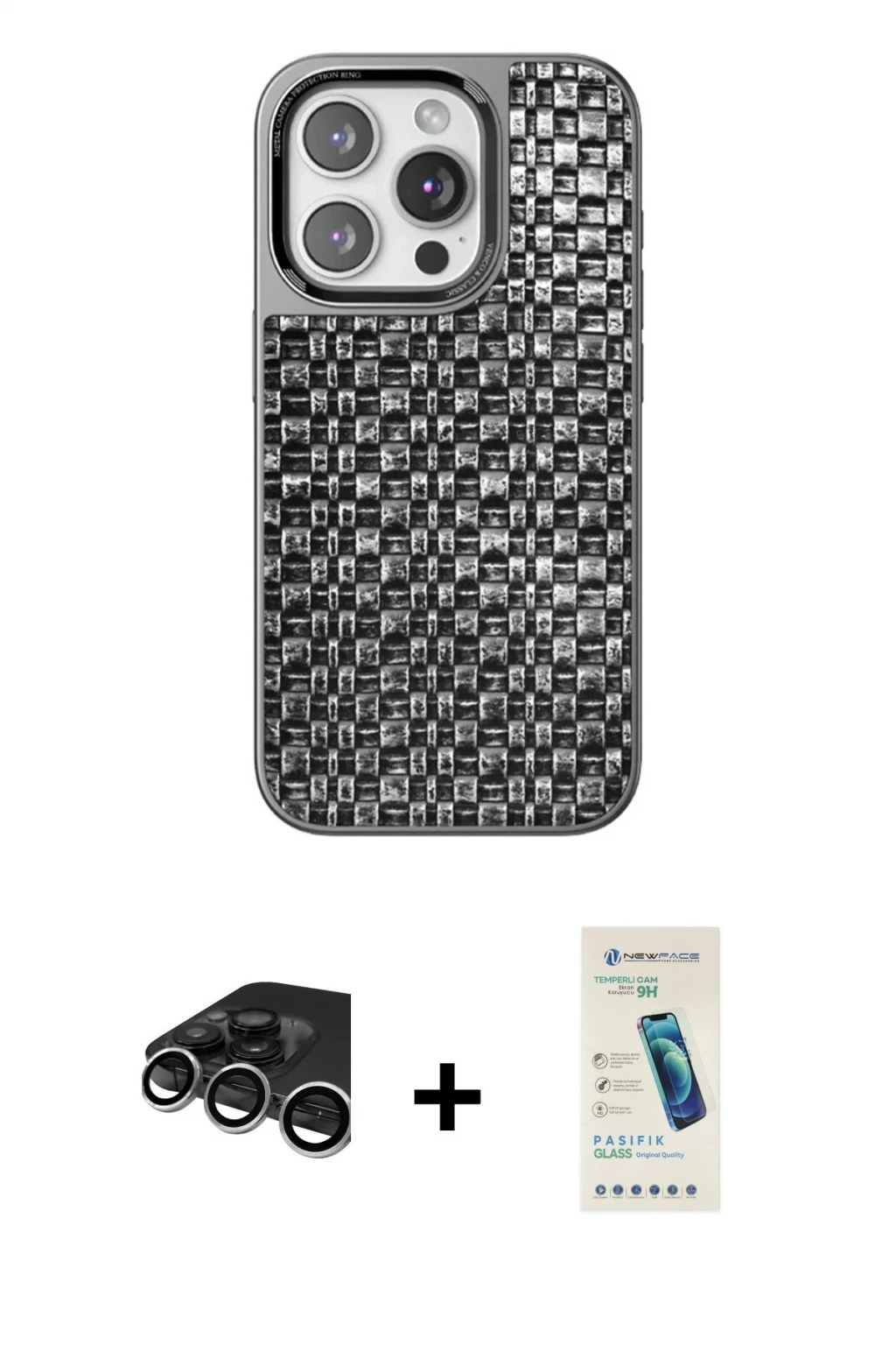 ieg™ iPhone 16 Pro Max Kılıf Ahenk Klasik - Siyah Bilvis 3X AR HD Cam Ekran Koruyucu + Pers Alüminyum Kamera Lens - GI