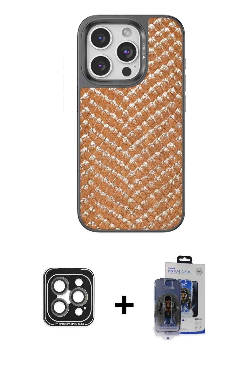 iPhone 15 Pro Max Vadi Özel Seri - Siyah Vanessa Magic Cam + Gri PVD Metal Kamera Lens, iPhone 15 Pro Max modeli için kılıf, ekran koruyucu ve kamera lens koruyucuyu bir araya getiren premium bir settir. Görünümde kılıfta Titan Gri tonu, lens koruyucuda Gri detay ile bütünlüklü ve dikkat çekici bir stil sunar. Set; günlük kullanıma uygun şık koruma, ekranı çizilme ve darbelere karşı destekleyen koruma ve kamera bölümünü ekstra güvenceye alan koruma sağlayarak cihazınızı günlük kullanıma karşı destekler. Tek paketle hem estetik hem de kapsamlı korumayı pratik şekilde tamamlayabilirsiniz.