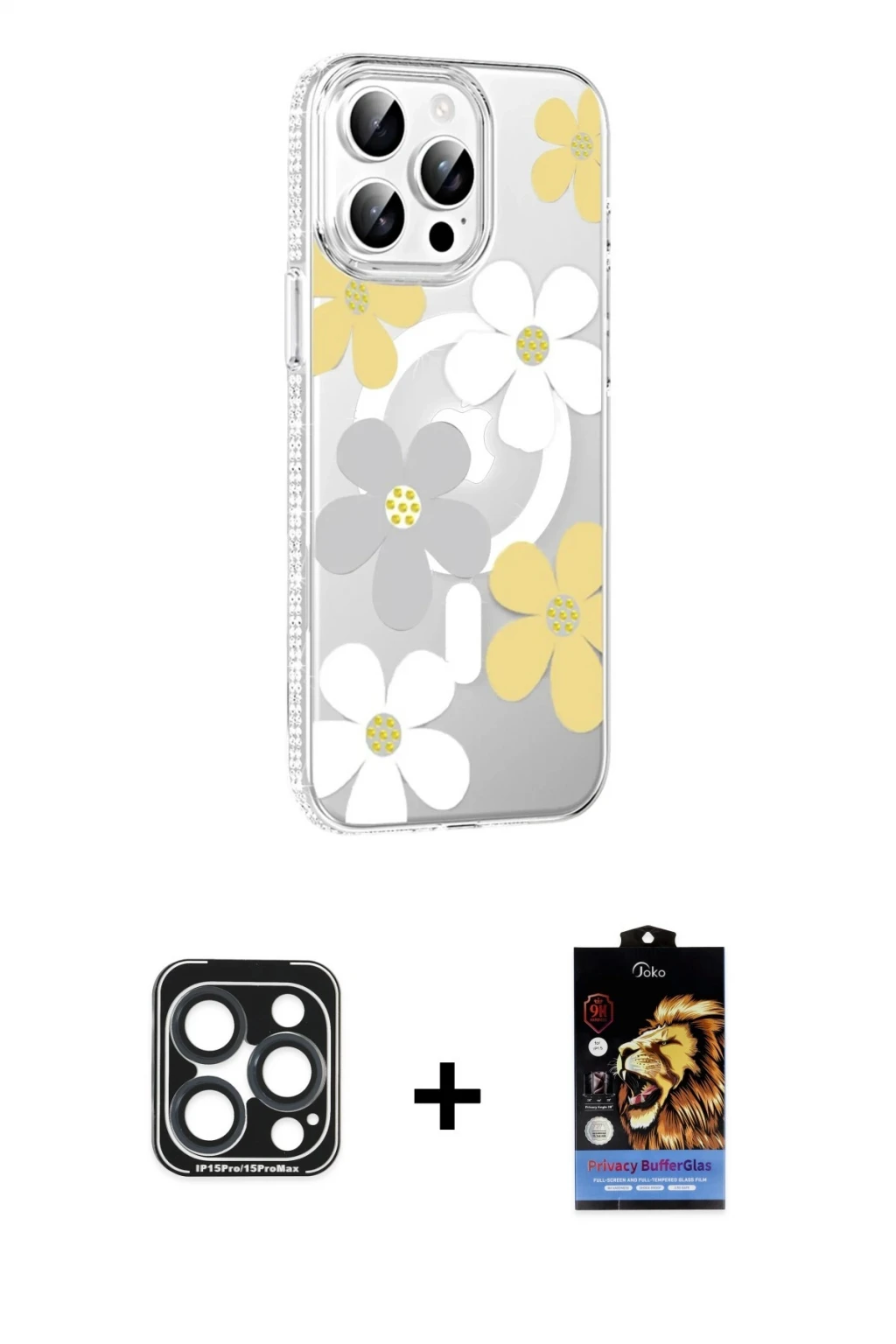 iPhone 15 Pro Max Yörünge Işık Prime - Siyah Buffer Hayalet Cam Ekran Koruyucu + Lacivert PVD Metal Kamera Lens, iPhone 15 Pro Max modeli için kılıf, ekran koruyucu ve kamera lens koruyucuyu bir araya getiren premium bir settir. Görünümde kılıfta Beyaz tonu, lens koruyucuda Lacivert detay ile bütünlüklü ve dikkat çekici bir stil sunar. Set; günlük kullanıma uygun şık koruma, ekranı çizilme ve darbelere karşı destekleyen koruma ve kamera bölümünü ekstra güvenceye alan koruma sağlayarak cihazınızı günlük kullanıma karşı destekler. Tek paketle hem estetik hem de kapsamlı korumayı pratik şekilde tamamlayabilirsiniz.
