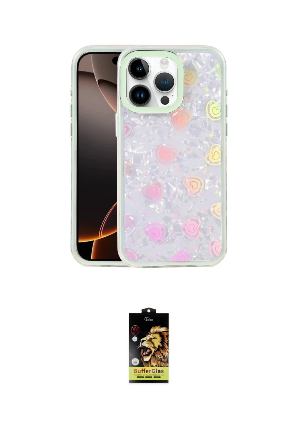 iPhone 16 Pro Kılıf Odak Prime - Siyah Buffer Cam Ekran Koruyucu, iPhone 16 Pro modeli için kılıf ve ekran koruyucuyu bir araya getiren uyumlu bir settir. Kılıfta Yeşil tonu ile görünümü tamamlar, ekran koruyucu ile günlük kullanımda dengeli koruma sunar. Newface Apple iPhone 16 Pro Lumi Desenli Kapak - Yeşil cihazın gövdesini desteklerken, Joko iPhone 16 Pro Buffer Cam Ekran Koruyucu - Siyah ekranı çizilme ve darbelere karşı tamamlayıcı koruma sağlar. Tek paketle hem görünümü hem de temel korumayı hızlıca tamamlayabilirsiniz.