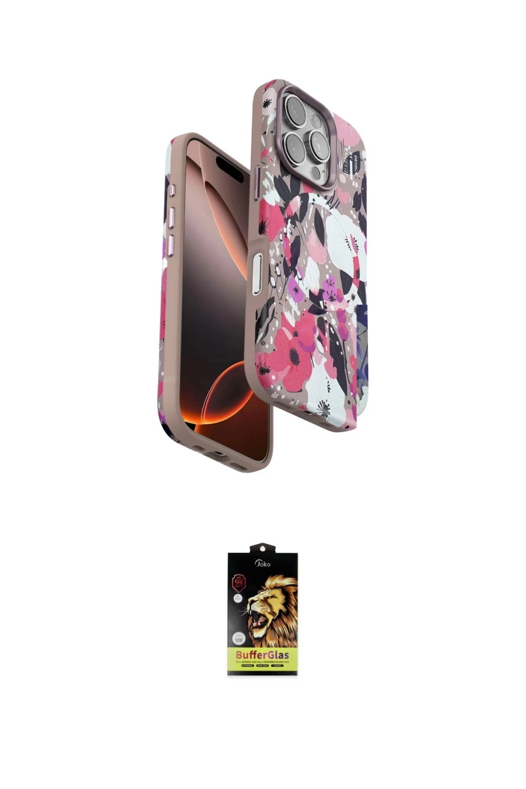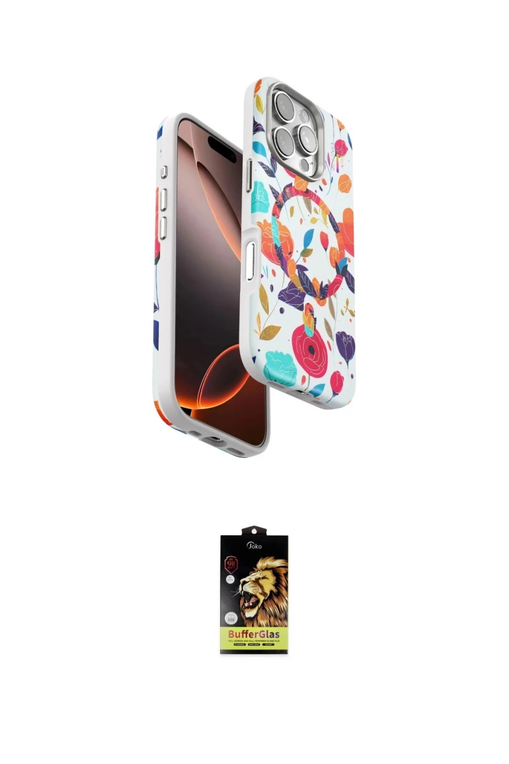 iPhone 16 Pro Kılıf Siluet Doku - Siyah Buffer Cam Ekran Koruyucu, iPhone 16 Pro modeli için kılıf ve ekran koruyucuyu bir araya getiren uyumlu bir settir. Kılıfta Beyaz tonu ile görünümü tamamlar, ekran koruyucu ile günlük kullanımda dengeli koruma sunar. Onegif iPhone 16 Pro Flower Series Magsafe Kapak - Beyaz cihazın gövdesini desteklerken, Joko iPhone 16 Pro Buffer Cam Ekran Koruyucu - Siyah ekranı çizilme ve darbelere karşı tamamlayıcı koruma sağlar. Tek paketle hem görünümü hem de temel korumayı hızlıca tamamlayabilirsiniz.