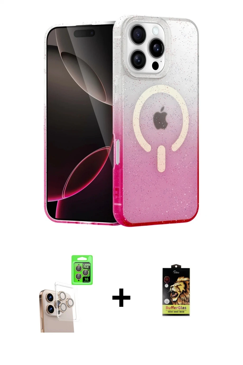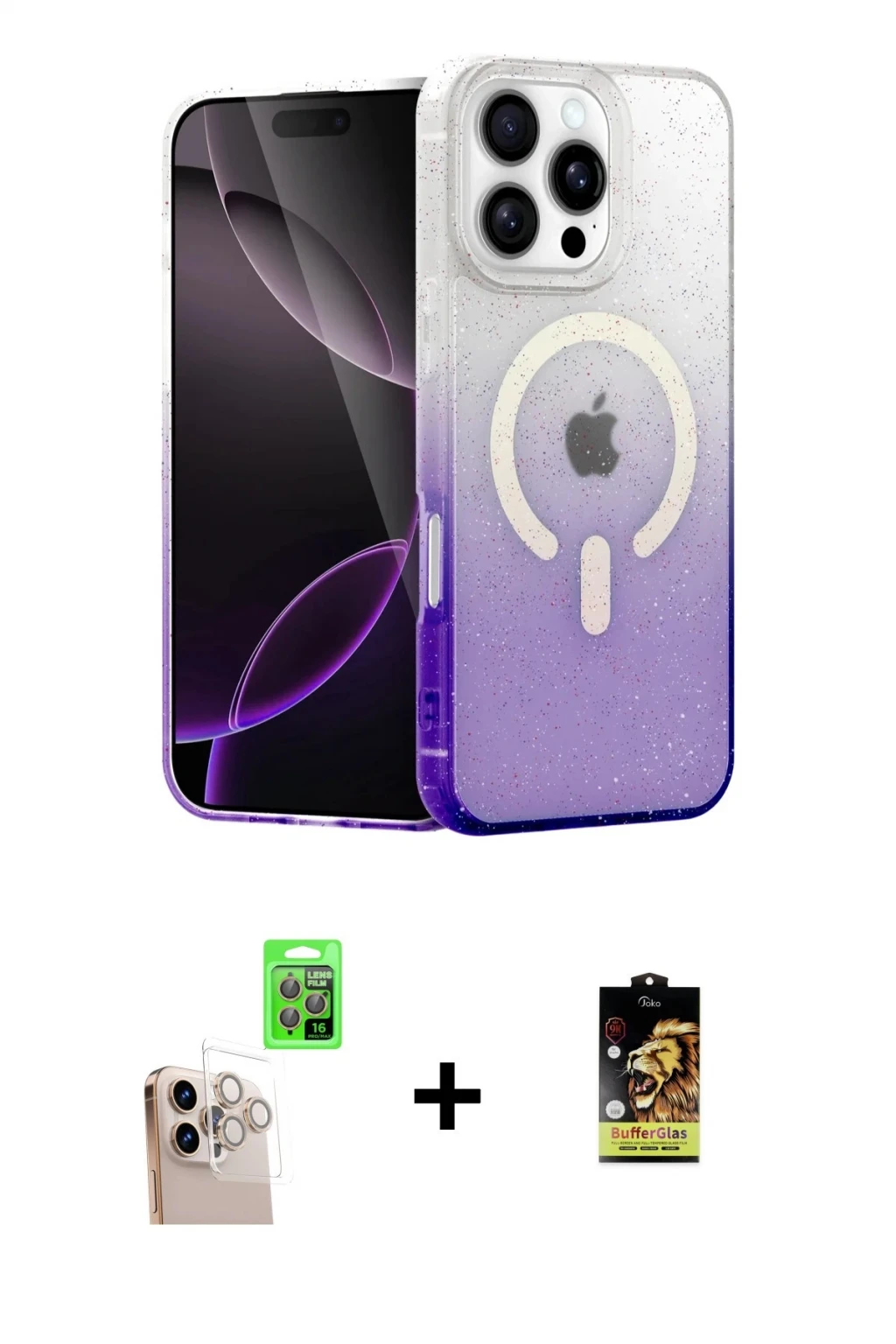 ieg™ iPhone 12 Pro Max Kılıf Ahenk Klasik - Şeffaf Royal Nano Ekran Koruyucu + Gökkuşağı Shine Kamera Lens