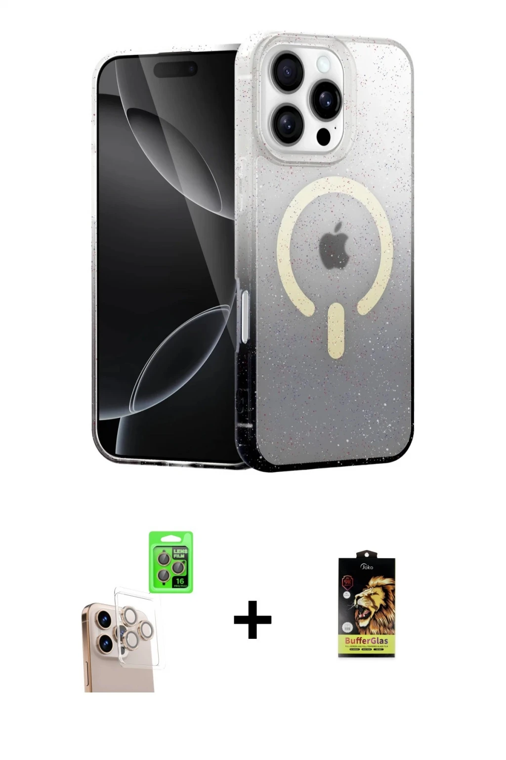 iPhone 16 Pro Max Eksen Minimal Özel Seri - Siyah Buffer Cam Ekran Koruyucu + Natural Grey Raze Metal Kamera Lens