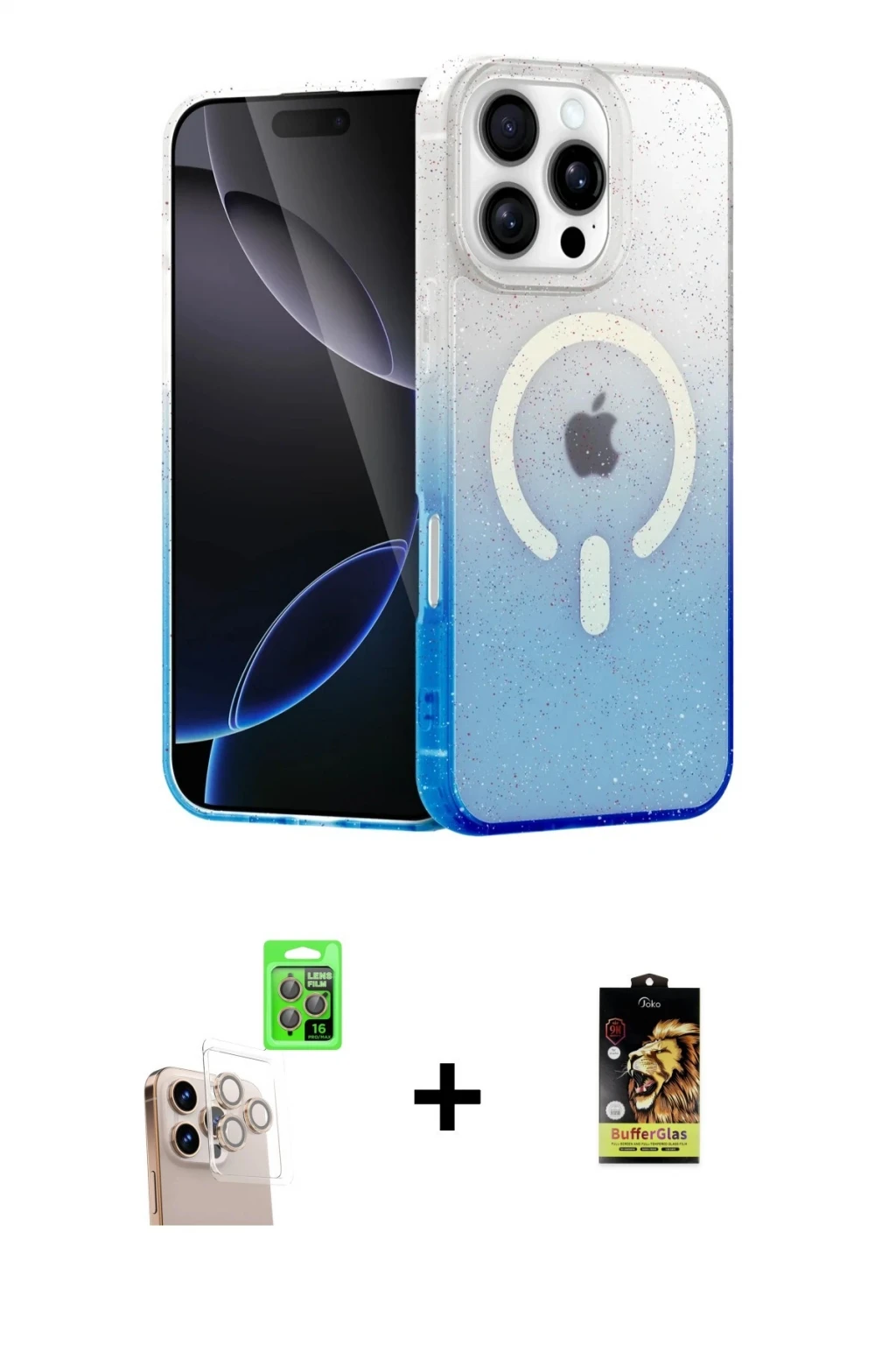 ieg™ iPhone 17 Kılıf Zirve Doku Prime - Siyah Joko Magic 5D Cam + Açık Mavi Raze Metal Kamera Lens