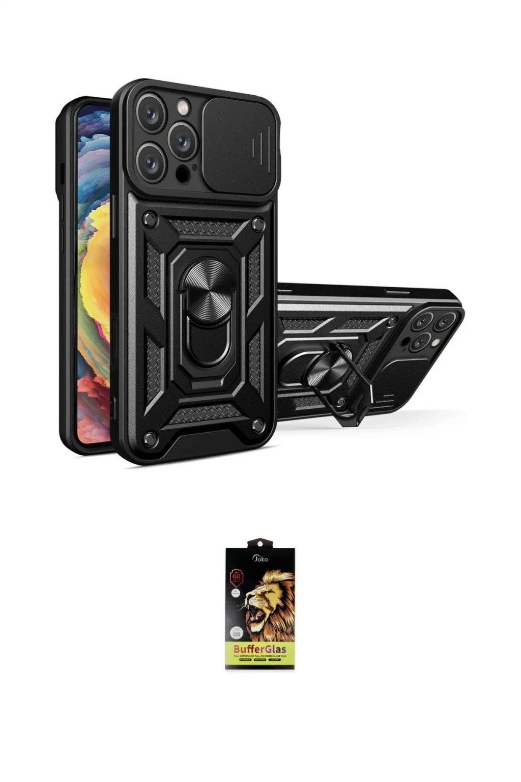 iPhone 16 Pro Max Kılıf Ahenk Klasik - Siyah Buffer Cam Ekran Koruyucu, iPhone 16 Pro Max modeli için kılıf ve ekran koruyucuyu bir araya getiren uyumlu bir settir. Kılıfta Siyah tonu ile görünümü tamamlar, ekran koruyucu ile günlük kullanımda dengeli koruma sunar. Newface iPhone 16 Pro Max Kılıf Pars Lens Yüzüklü Silikon - Siyah cihazın gövdesini desteklerken, Joko iPhone 16 Pro Max Buffer Cam Ekran Koruyucu - Siyah ekranı çizilme ve darbelere karşı tamamlayıcı koruma sağlar. Tek paketle hem görünümü hem de temel korumayı hızlıca tamamlayabilirsiniz.