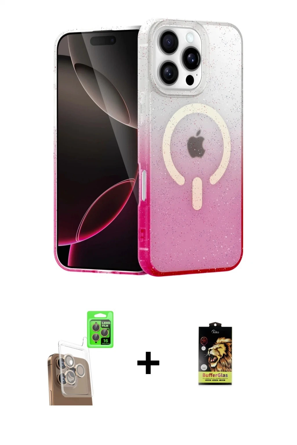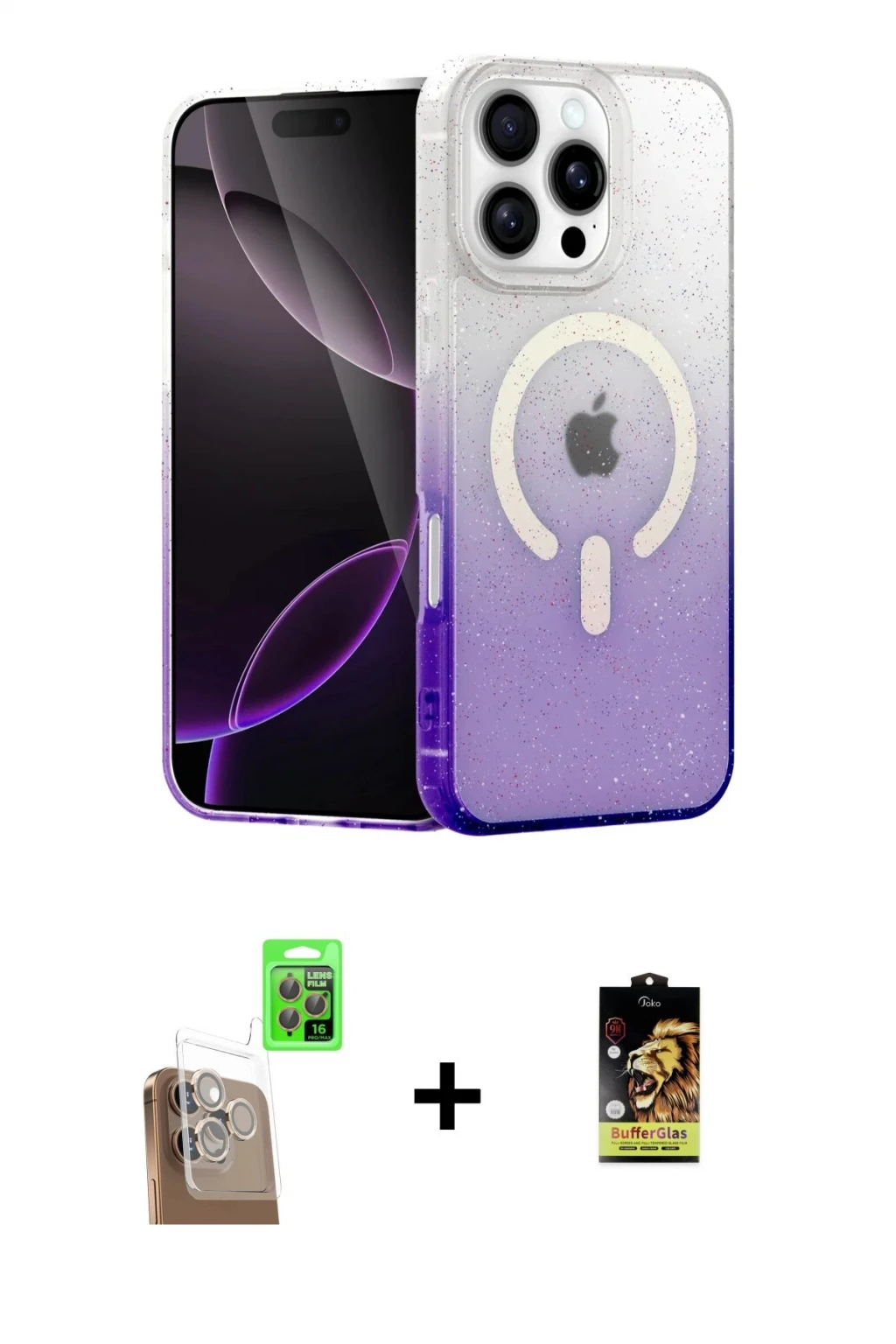 ieg™ iPhone 16E Kılıf Kozmos Yansıma Özel Seri - Siyah Bilvis Hayalet Cam Ekran Koruyucu + Bilvis Titan Kamera Lens - RW