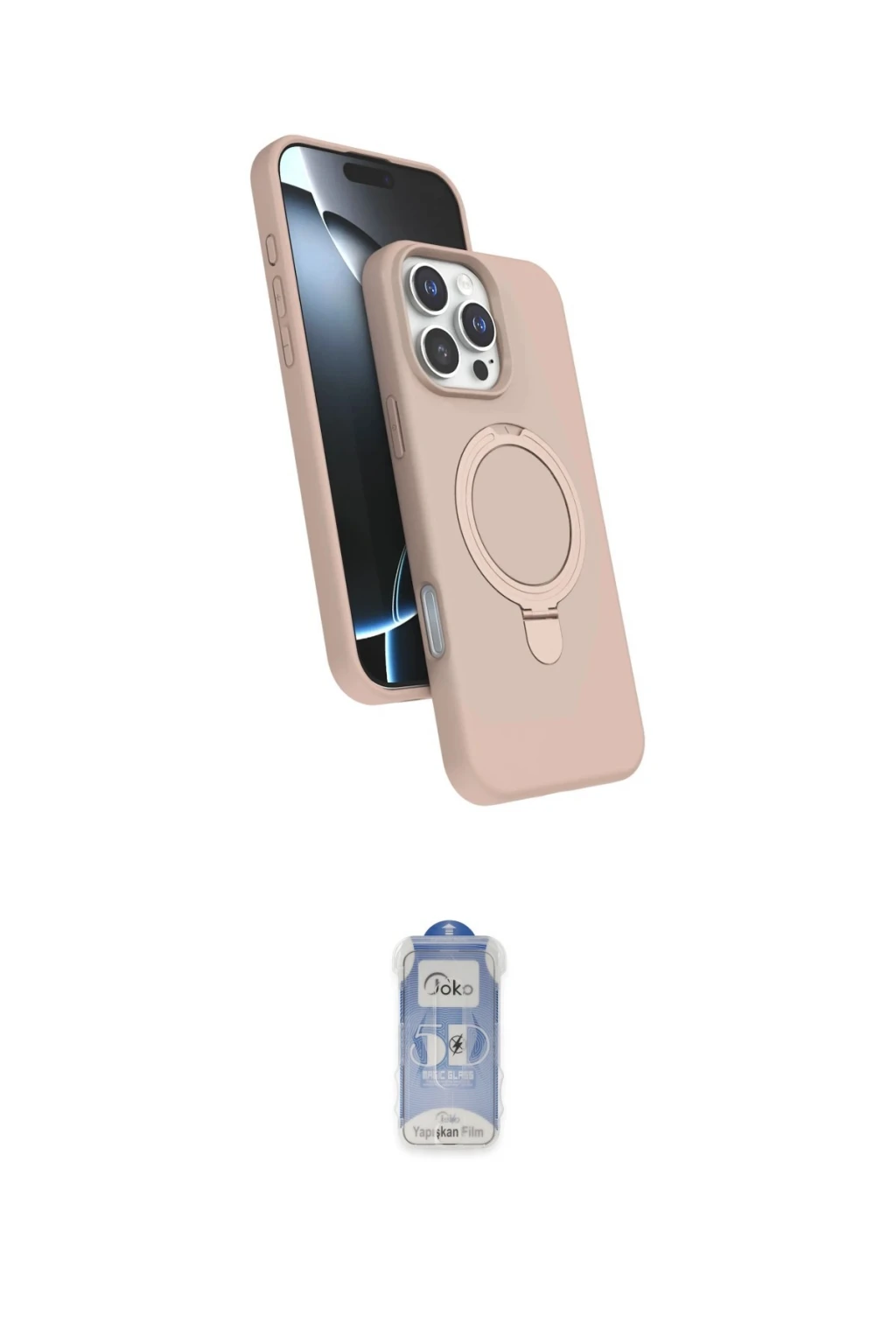 iPhone 16 Pro Max Kılıf İz Işık Koleksiyonu - Siyah Joko Magic 5D Cam, iPhone 16 Pro Max modeli için kılıf ve ekran koruyucuyu bir araya getiren uyumlu bir settir. Kılıfta Açık Pembe tonu ile görünümü tamamlar, ekran koruyucu ile günlük kullanımda dengeli koruma sunar. Newface Apple iPhone 16 Pro Max Regal Magsafe Standlı Kapak - Açık Pembe cihazın gövdesini desteklerken, Joko iPhone 16 Pro Max Joko Magic 5D Cam - Siyah ekranı çizilme ve darbelere karşı tamamlayıcı koruma sağlar. Tek paketle hem görünümü hem de temel korumayı hızlıca tamamlayabilirsiniz.