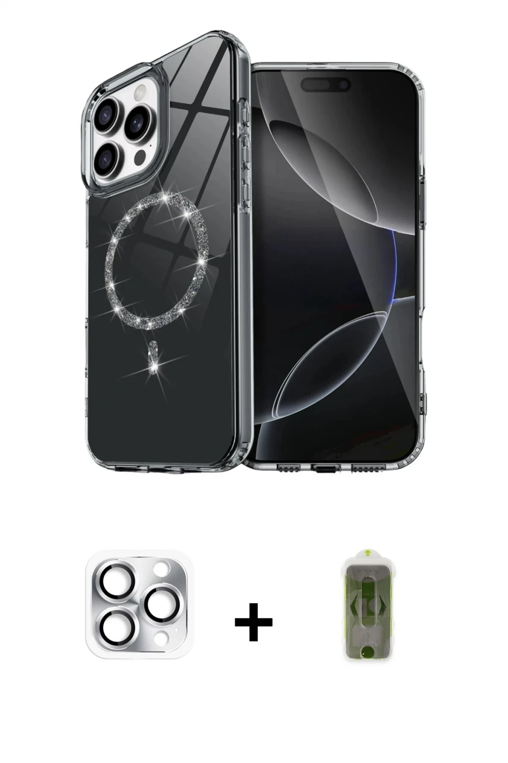 iPhone 16 Pro Max Kıvılcım Form Prime - Siyah Joko Magic 5D Hayalet Cam + Gümüş Pers Alüminyum Kamera Lens, iPhone 16 Pro Max modeli için kılıf, ekran koruyucu ve kamera lens koruyucuyu bir araya getiren premium bir settir. Görünümde kılıfta Mavi tonu, lens koruyucuda Gümüş detay ile bütünlüklü ve dikkat çekici bir stil sunar. Set; günlük kullanıma uygun şık koruma, ekranı çizilme ve darbelere karşı destekleyen koruma ve kamera bölümünü ekstra güvenceye alan koruma sağlayarak cihazınızı günlük kullanıma karşı destekler. Tek paketle hem estetik hem de kapsamlı korumayı pratik şekilde tamamlayabilirsiniz.
