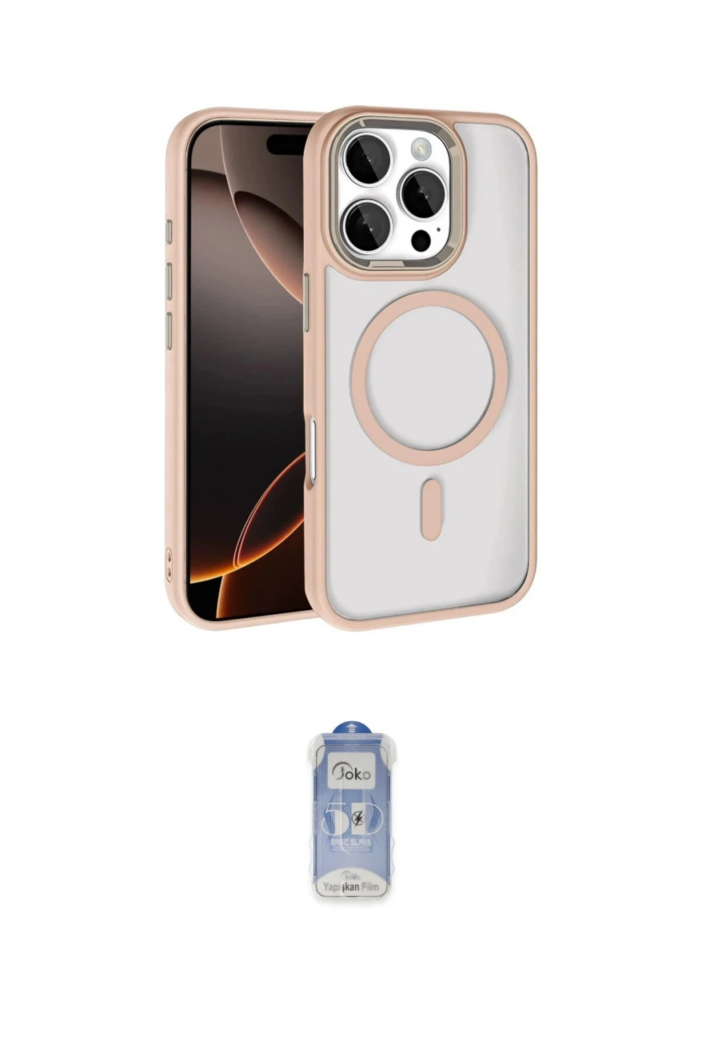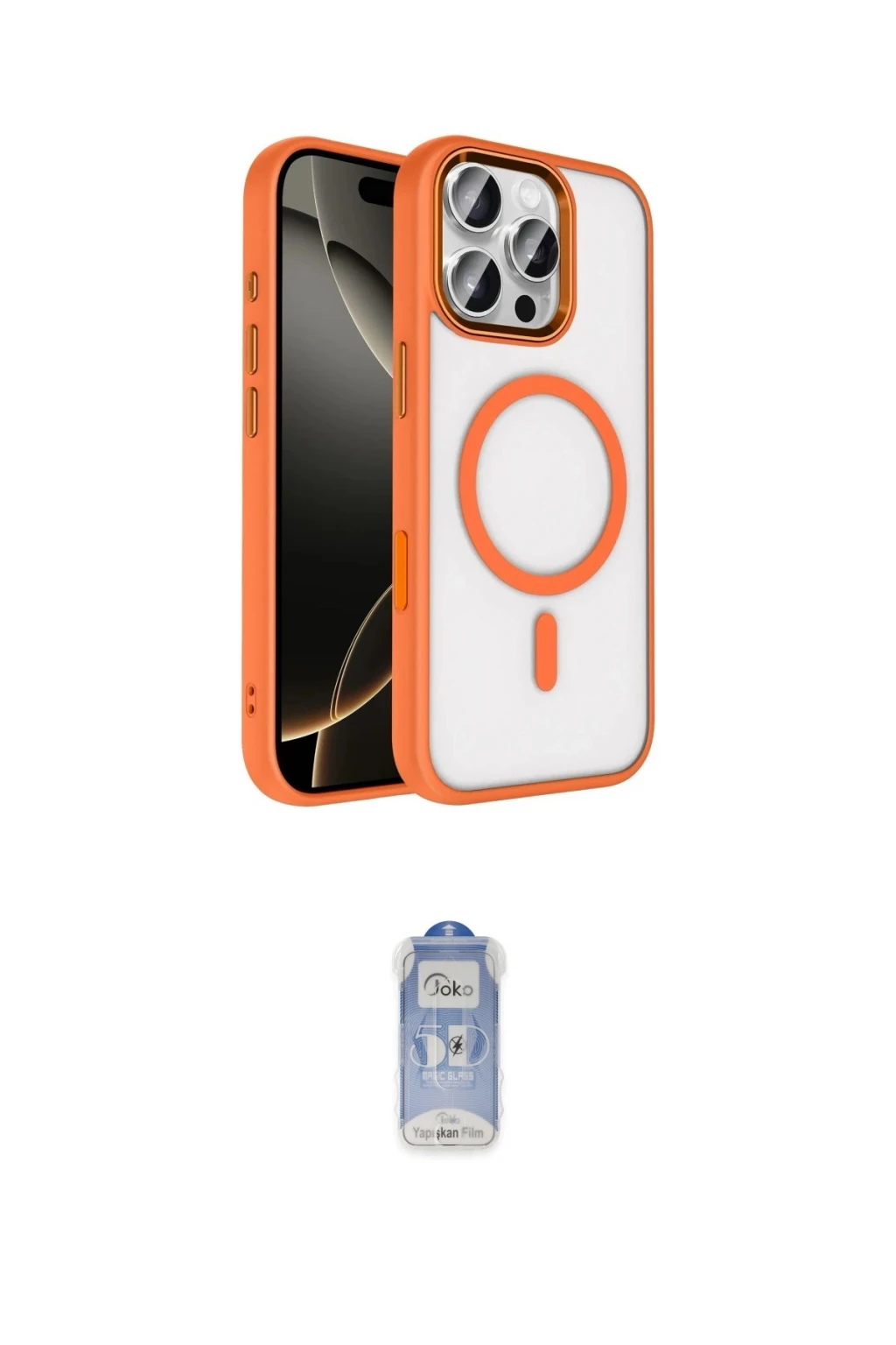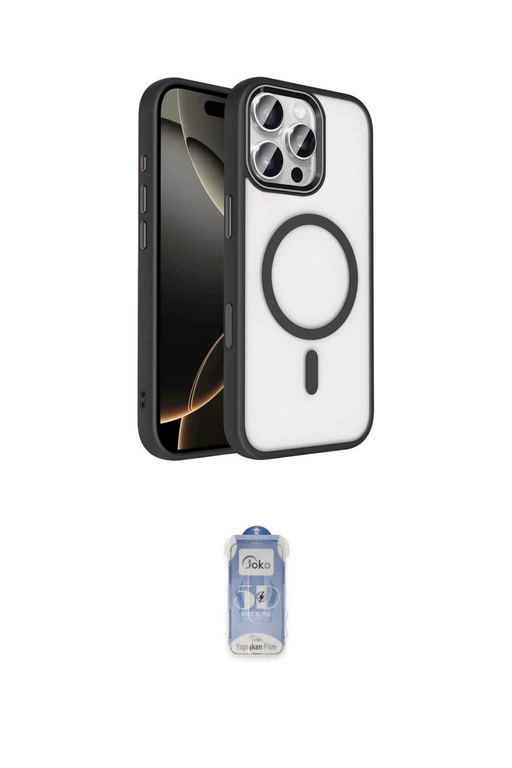 iPhone 16 Pro Max Kılıf Kıvılcım Prime - Siyah Joko Magic 5D Cam, iPhone 16 Pro Max modeli için kılıf ve ekran koruyucuyu bir araya getiren uyumlu bir settir. Kılıfta Gold tonu ile görünümü tamamlar, ekran koruyucu ile günlük kullanımda dengeli koruma sunar. Joko Apple iPhone 16 Pro Max Terea Magsafe Kapak - Gold cihazın gövdesini desteklerken, Joko iPhone 16 Pro Max Joko Magic 5D Cam - Siyah ekranı çizilme ve darbelere karşı tamamlayıcı koruma sağlar. Tek paketle hem görünümü hem de temel korumayı hızlıca tamamlayabilirsiniz.