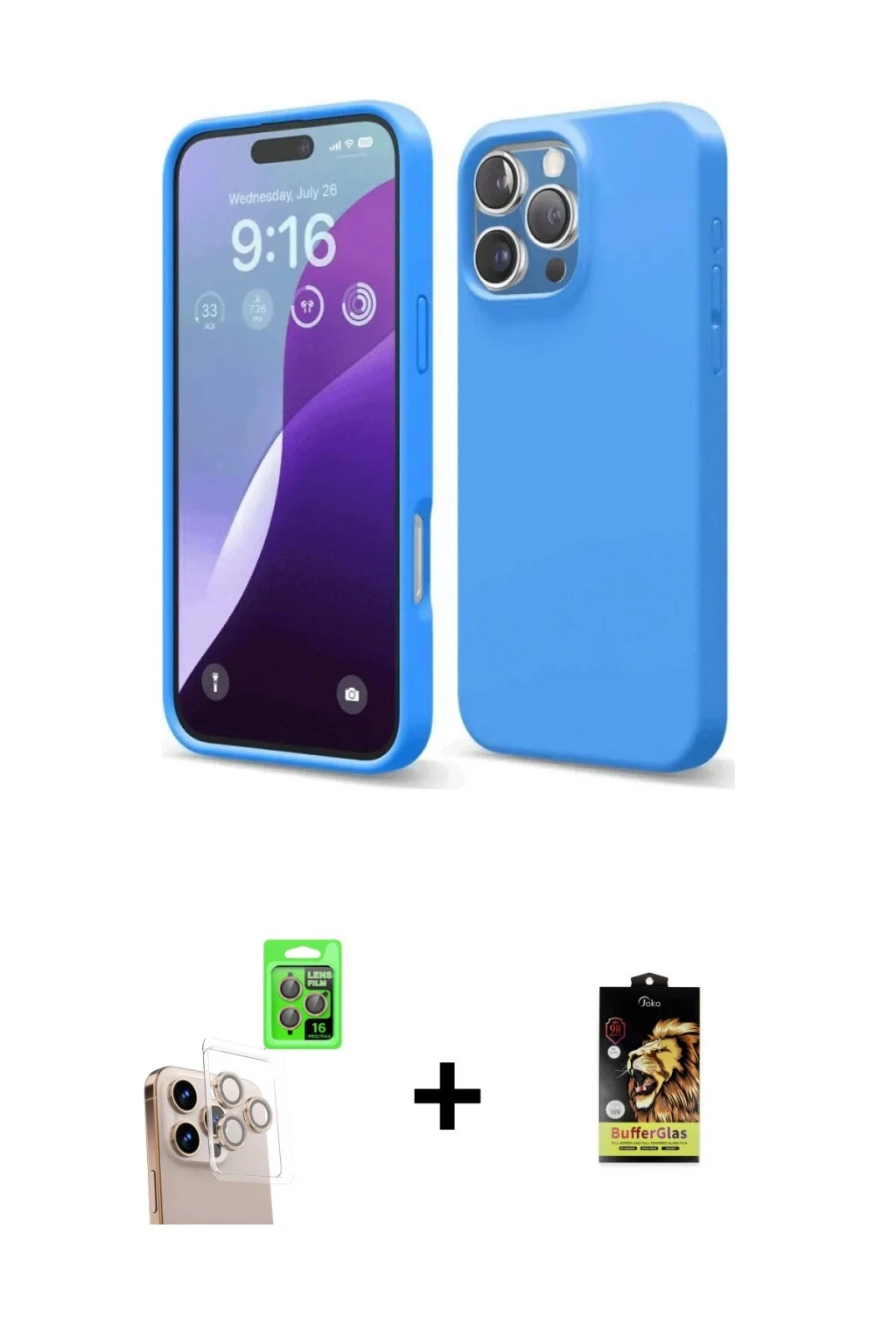 ieg™ iPhone 16 Pro Max Kılıf Doruk Klasik Koleksiyonu - Şeffaf Pasifik Cam Ekran Koruyucu + PVD Metal Kamera Lens - GS