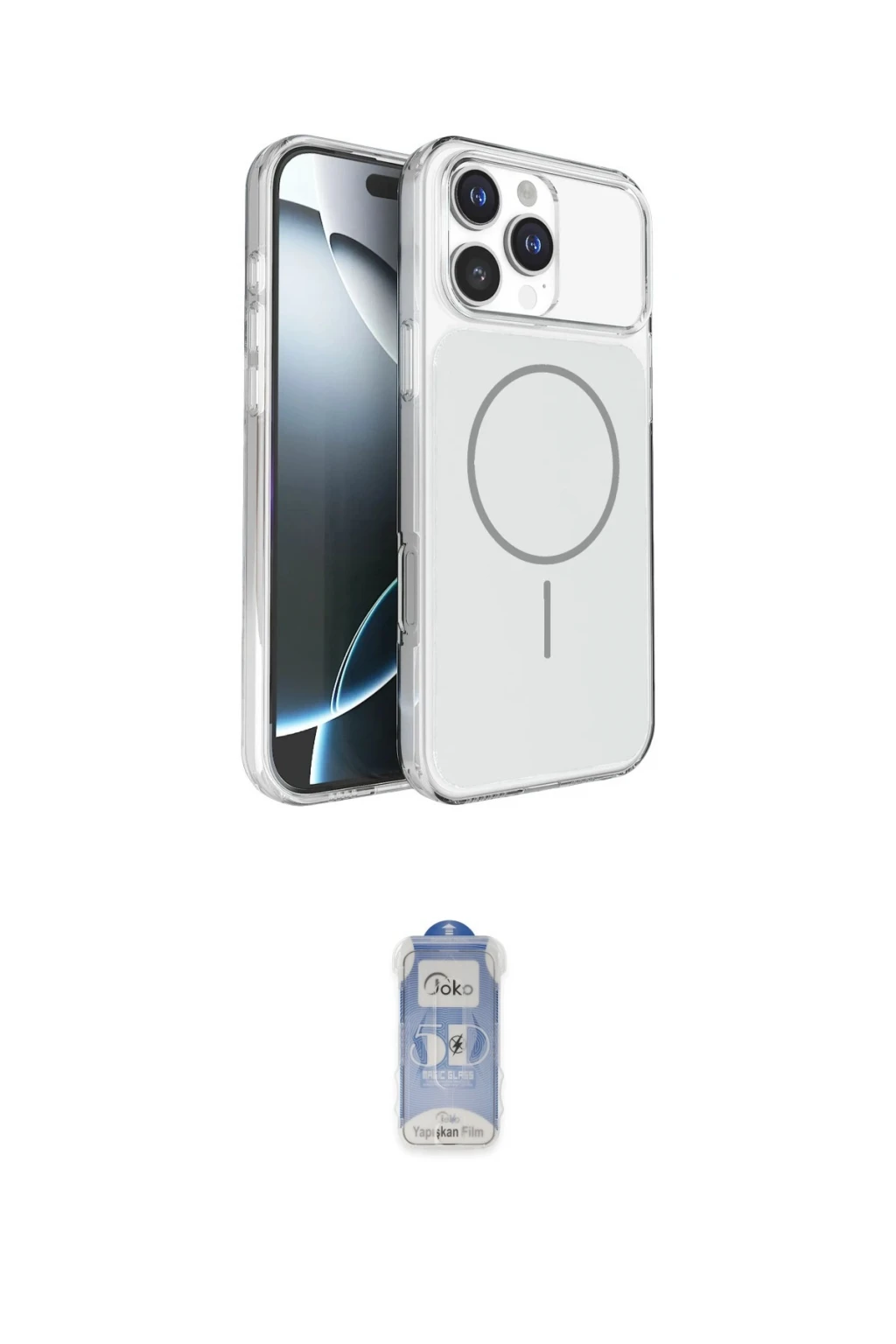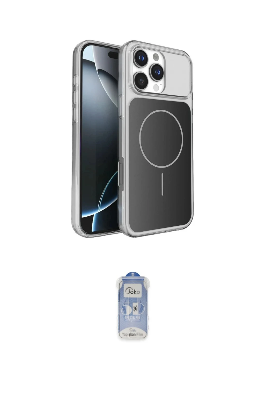 iPhone 16 Pro Max Kılıf Kutup Doku Serisi - Siyah Joko Magic 5D Cam, iPhone 16 Pro Max modeli için kılıf ve ekran koruyucuyu bir araya getiren uyumlu bir settir. Kılıfta Gümüş tonu ile görünümü tamamlar, ekran koruyucu ile günlük kullanımda dengeli koruma sunar. Joko Apple iPhone 16 Pro Max Bruma Magsafe Kapak - Gümüş cihazın gövdesini desteklerken, Joko iPhone 16 Pro Max Joko Magic 5D Cam - Siyah ekranı çizilme ve darbelere karşı tamamlayıcı koruma sağlar. Tek paketle hem görünümü hem de temel korumayı hızlıca tamamlayabilirsiniz.