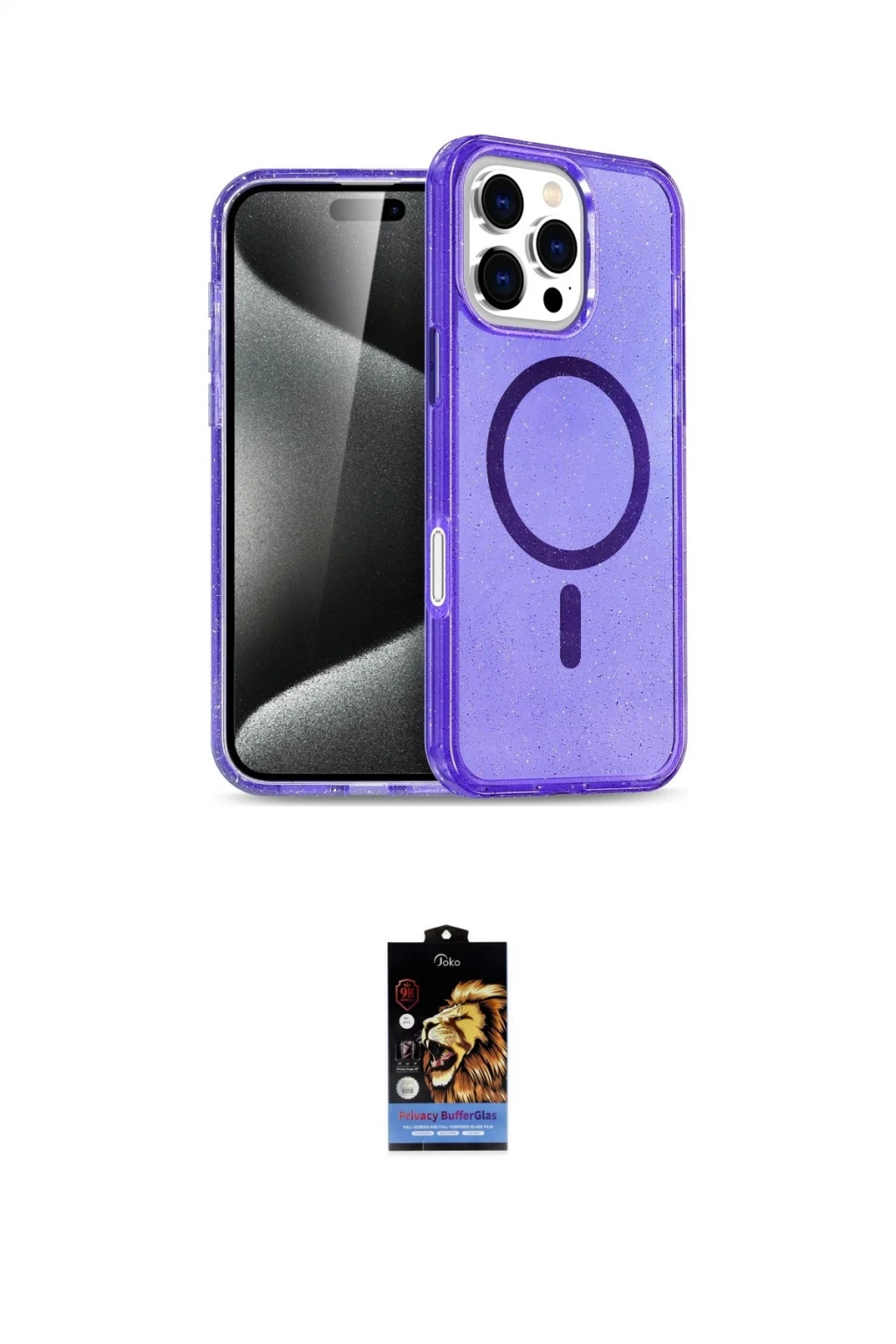 iPhone 16 Pro Max Kılıf Nova Asil Prime - Siyah Buffer Hayalet Cam Ekran Koruyucu, iPhone 16 Pro Max modeli için kılıf ve ekran koruyucuyu bir araya getiren uyumlu bir settir. Kılıfta Mor tonu ile görünümü tamamlar, ekran koruyucu ile günlük kullanımda dengeli koruma sunar. Joko Apple iPhone 16 Pro Max Star Magsafe Kapak - Mor cihazın gövdesini desteklerken, Joko iPhone 16 Pro Max Buffer Hayalet Cam Ekran Koruyucu - Siyah ekranı çizilme ve darbelere karşı tamamlayıcı koruma sağlar. Tek paketle hem görünümü hem de temel korumayı hızlıca tamamlayabilirsiniz.