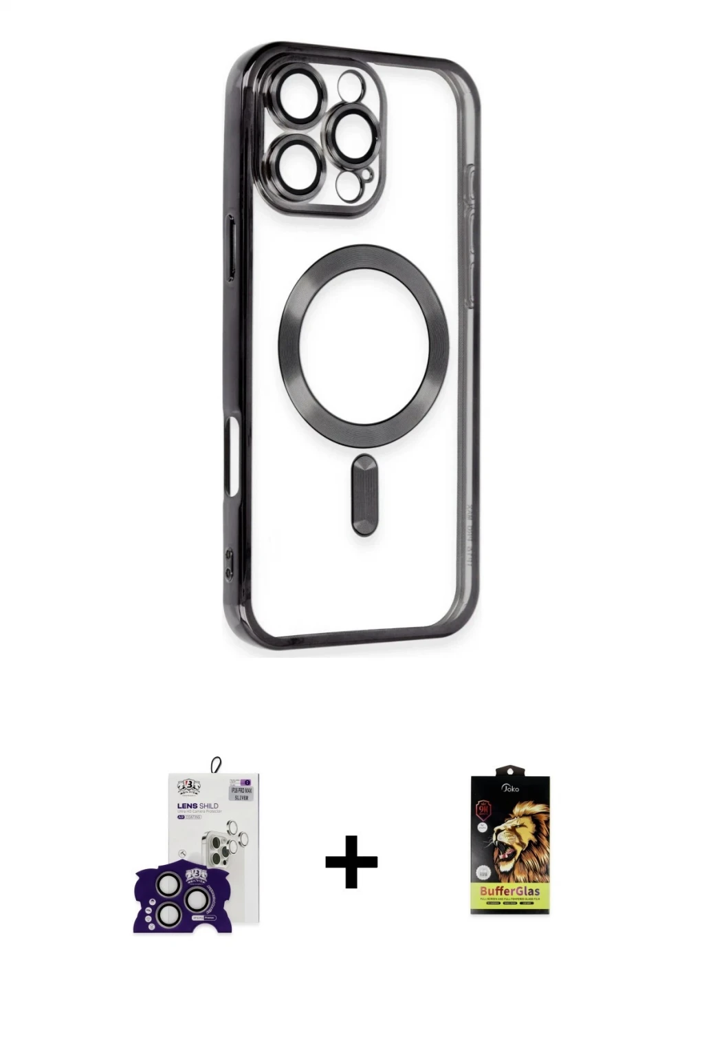 iPhone 16 Pro Max Nova Işık Özel Seri - Siyah Buffer Cam Ekran Koruyucu + Titanyum Gri Bilvis Titan Kamera Lens, iPhone 16 Pro Max modeli için kılıf, ekran koruyucu ve kamera lens koruyucuyu bir araya getiren premium bir settir. Görünümde kılıfta Siyah tonu, lens koruyucuda Titanyum Gri detay ile bütünlüklü ve dikkat çekici bir stil sunar. Set; günlük kullanıma uygun şık koruma, ekranı çizilme ve darbelere karşı destekleyen koruma ve kamera bölümünü ekstra güvenceye alan koruma sağlayarak cihazınızı günlük kullanıma karşı destekler. Tek paketle hem estetik hem de kapsamlı korumayı pratik şekilde tamamlayabilirsiniz.