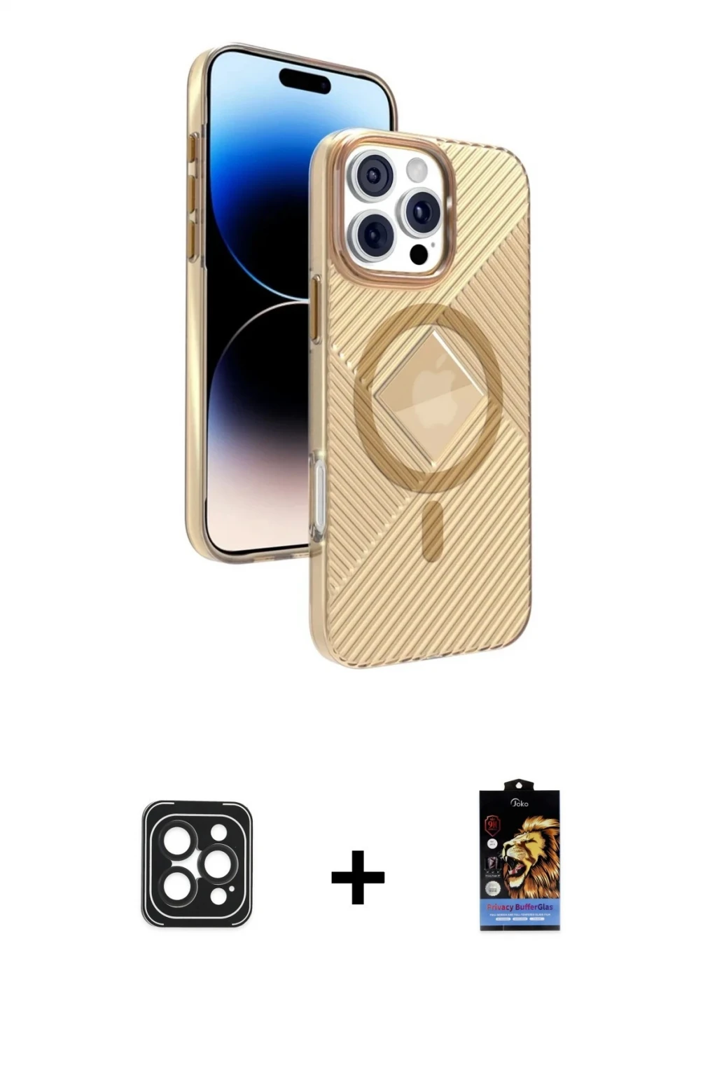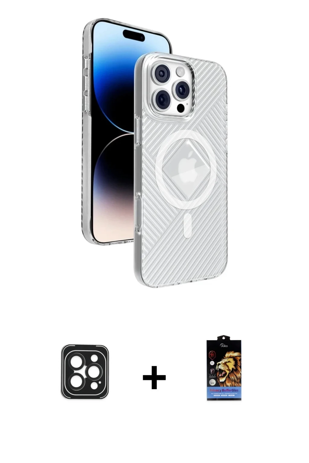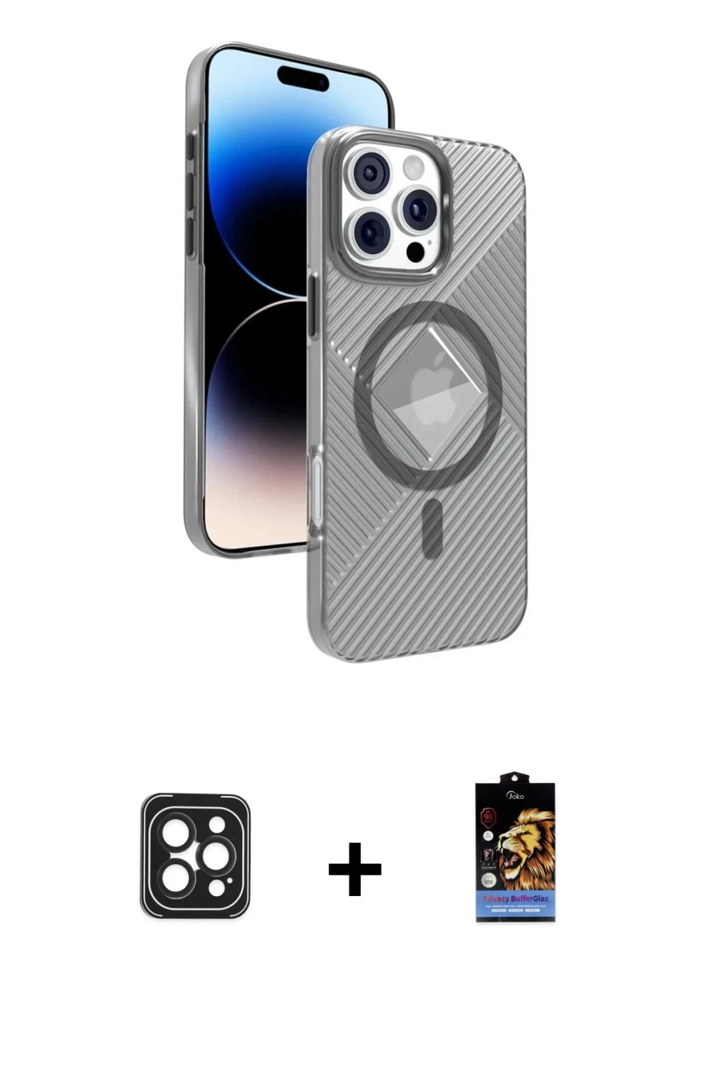 ieg™ iPhone 16 Pro Kılıf Siluet Işık Serisi - Siyah Bilvis 5in1 5D Magic Hayalet Cam Ekran Koruyucu + Raze Metal Kamera Lens - BZ