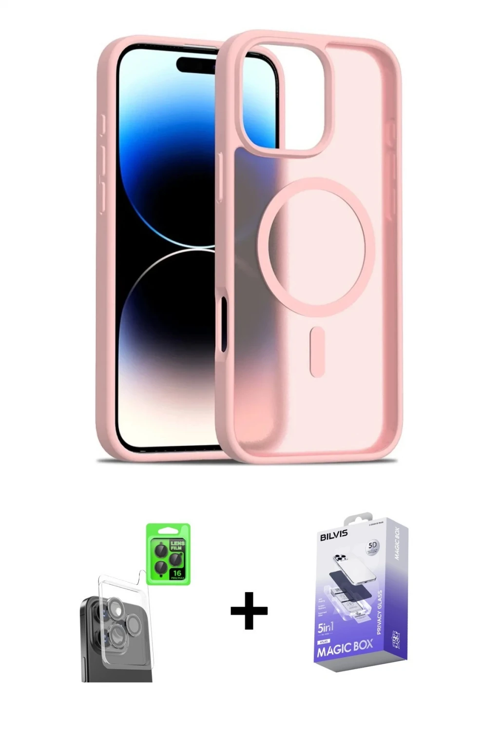 iPhone 16 Pro Max Siluet Minimal Prime - Siyah Bilvis 5in1 5D Magic Hayalet Cam Ekran Koruyucu + Siyah Raze Metal Kamera Lens, iPhone 16 Pro Max modeli için kılıf, ekran koruyucu ve kamera lens koruyucuyu bir araya getiren premium bir settir. Görünümde kılıfta Titan Gri tonu, lens koruyucuda Siyah detay ile bütünlüklü ve dikkat çekici bir stil sunar. Set; günlük kullanıma uygun şık koruma, ekranı çizilme ve darbelere karşı destekleyen koruma ve kamera bölümünü ekstra güvenceye alan koruma sağlayarak cihazınızı günlük kullanıma karşı destekler. Tek paketle hem estetik hem de kapsamlı korumayı pratik şekilde tamamlayabilirsiniz.