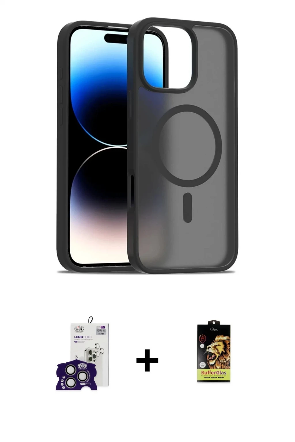 ieg™ iPhone 17 Kılıf Ahenk Yansıma Prime - Siyah Bilvis Hayalet Cam Ekran Koruyucu + Bilvis Titan Kamera Lens - LA