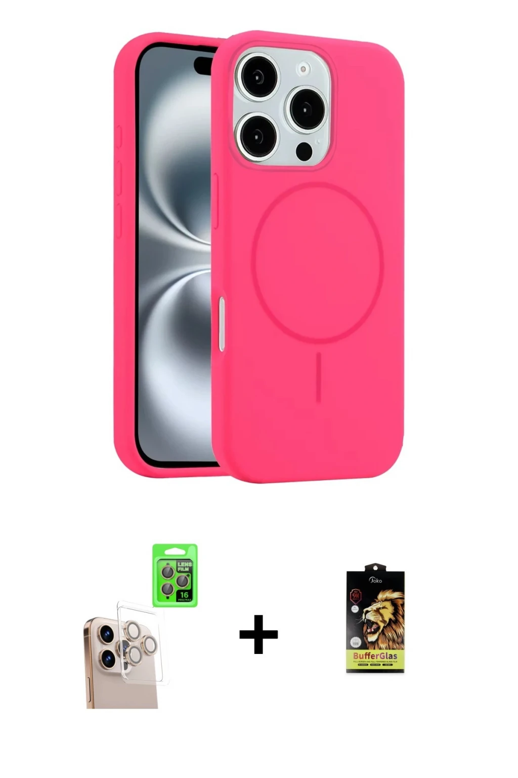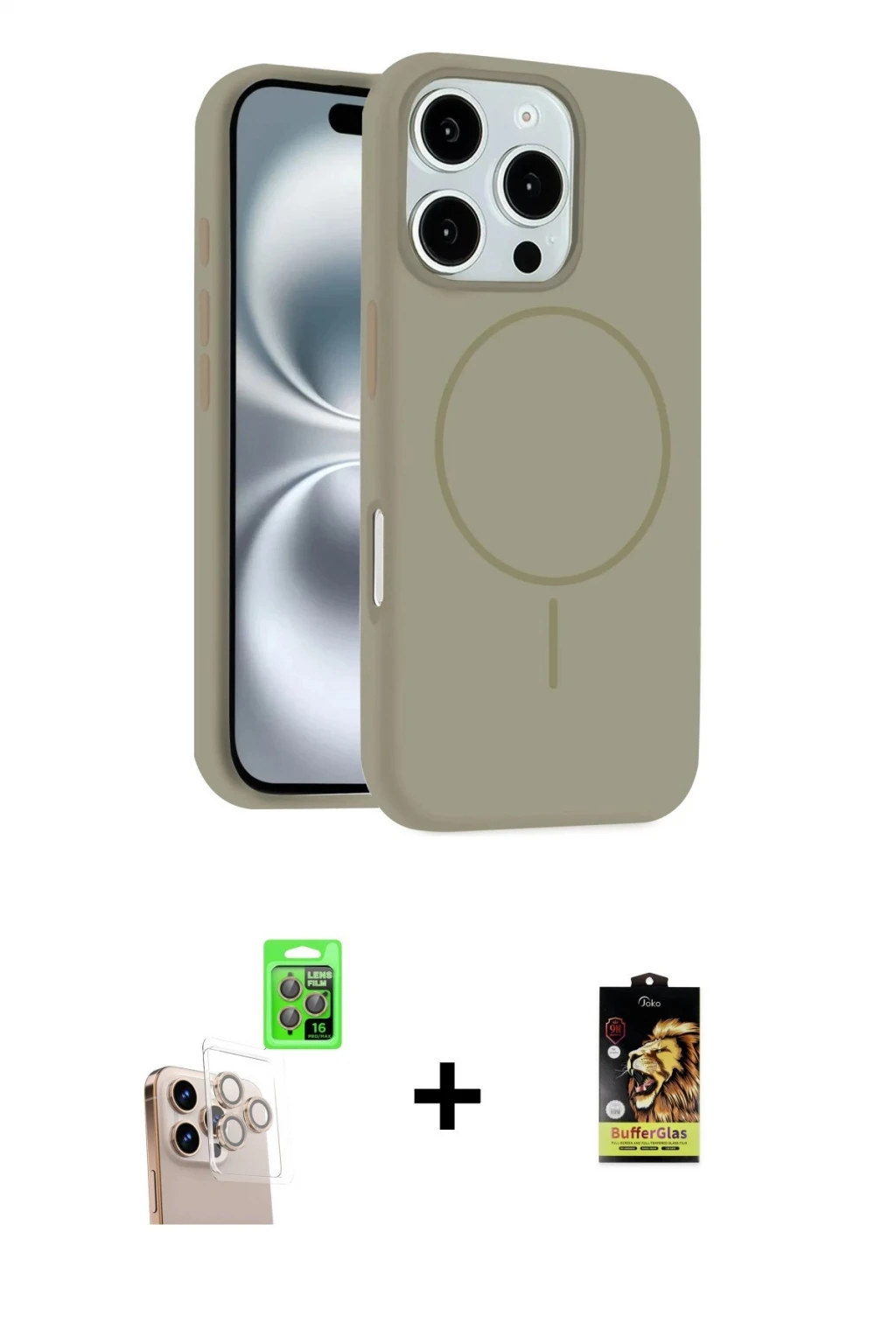 iPhone 16 Pro Max Kılıf Yankı Form Serisi - Siyah Buffer Cam Ekran Koruyucu + Natural Grey Raze Metal Kamera Lens